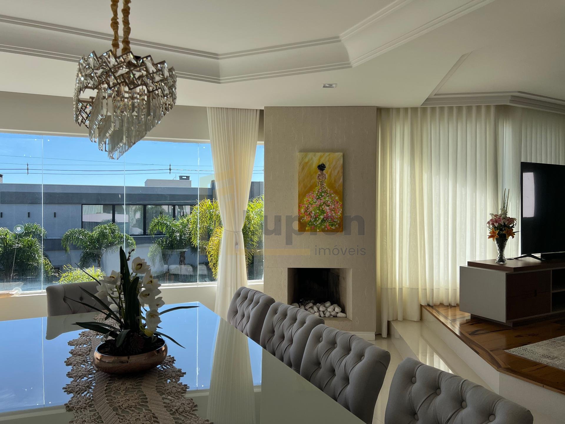 Ao entrar, você é recebido por uma sala espaçosa e ensolarada, ideal para reunir a família com conforto. A charmosa sala de jantar com lareira torna os momentos à mesa ainda mais aconchegantes. O escritório na entrada da casa é um espaço versátil, perfeito para quem trabalha ou estuda em casa. Um lavabo prático completa a área social.