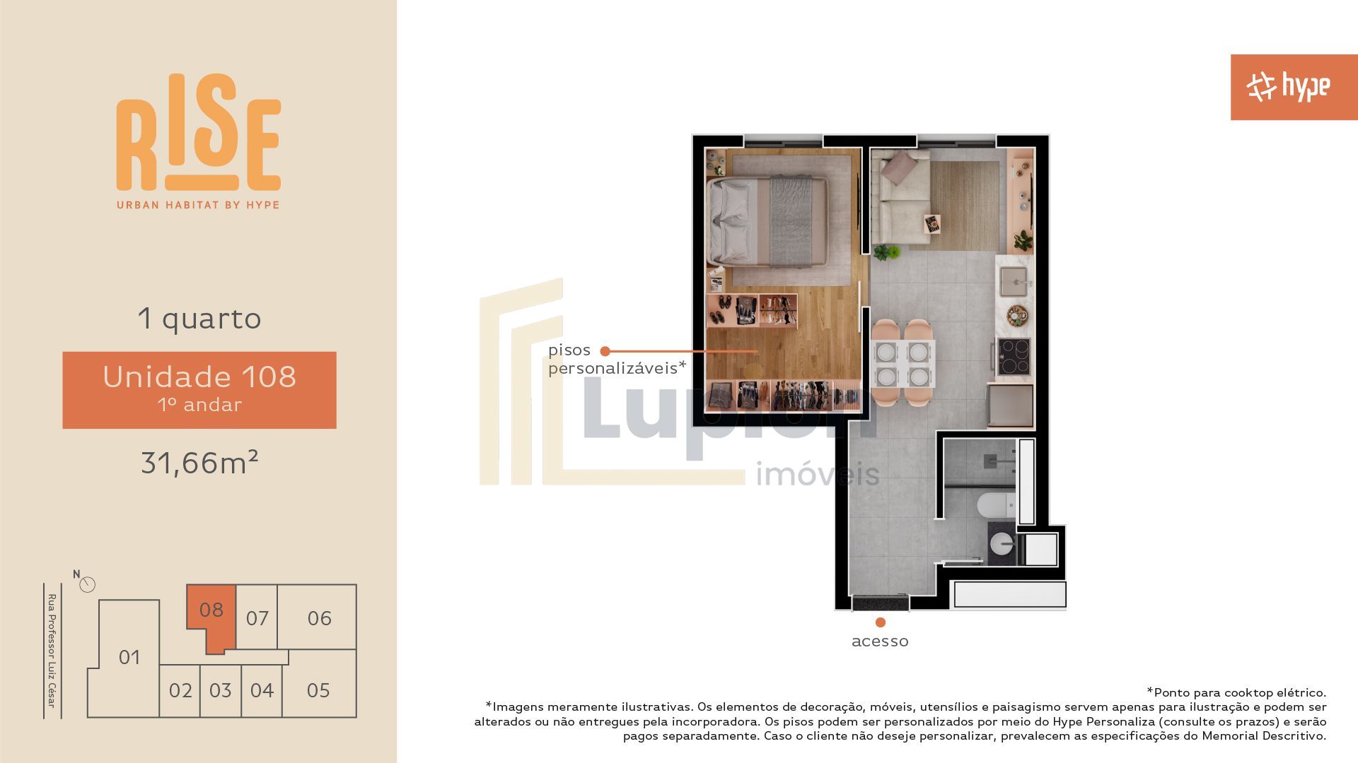 Composto por uma única torre de 6 pavimentos e apenas 30 unidades, o Rise Urban Habitat é sinônimo de exclusividade. São oito tipologias de plantas cuidadosamente projetadas para atender diferentes estilos de vida: studios, lofts duplex, apartamentos de 1 quarto, e opções de 2 e 3 quartos com suíte. As metragens variam de 28,75 m² a 84,23 m² privativos, oferecendo desde layouts compactos e funcionais até espaços amplos e sofisticados.