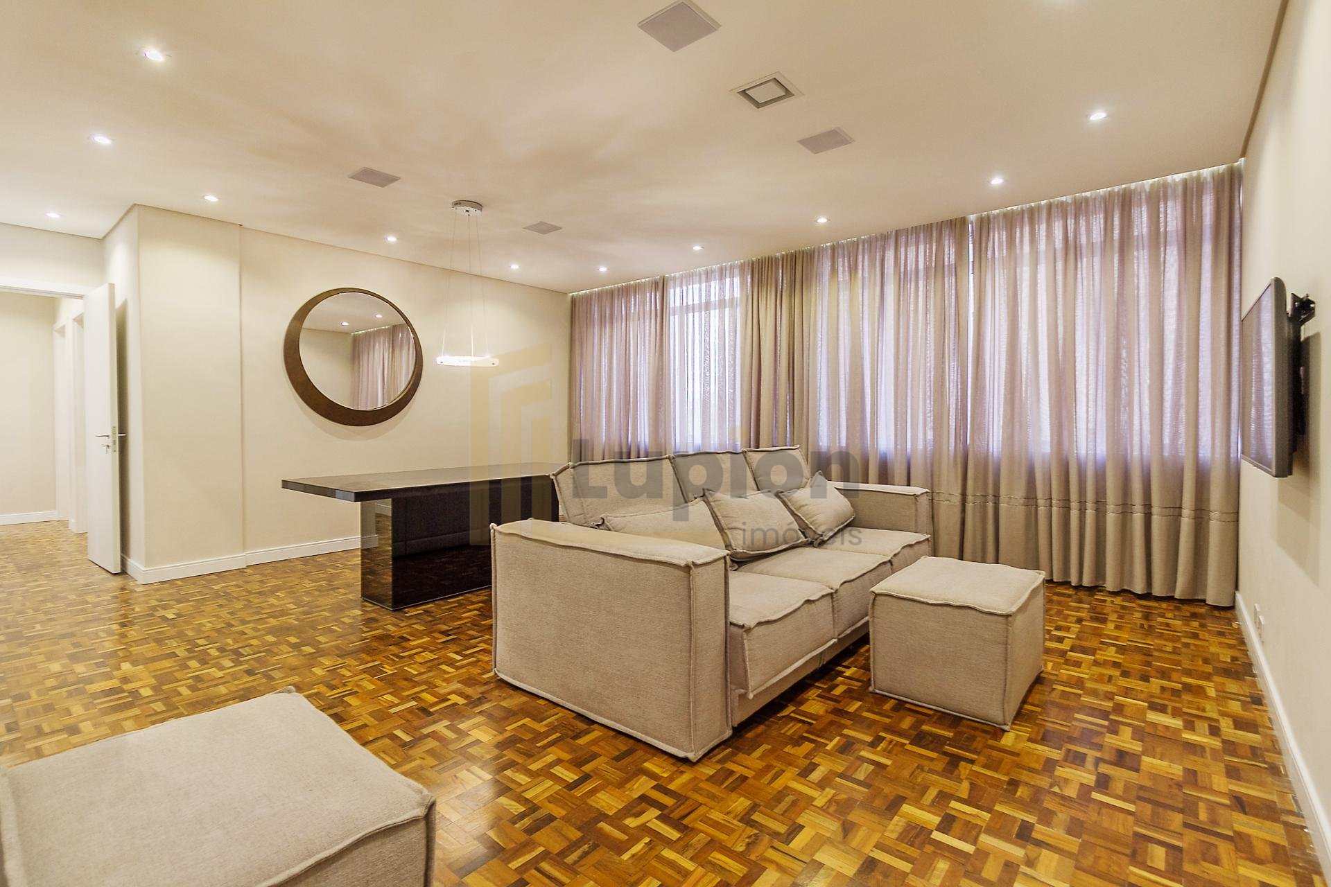 Apartamento reformado e mobiliado, em estilo retro-fit, localizado na Avenida Visconde de Guarapuava, no Batel. Fica a poucas quadras do Shopping Pátio Batel, Shopping Curitiba, Shopping Novo Batel e Shopping Crystal, próximo às ruas Coronel Dulcídio e Alferes Ângelo Sampaio.