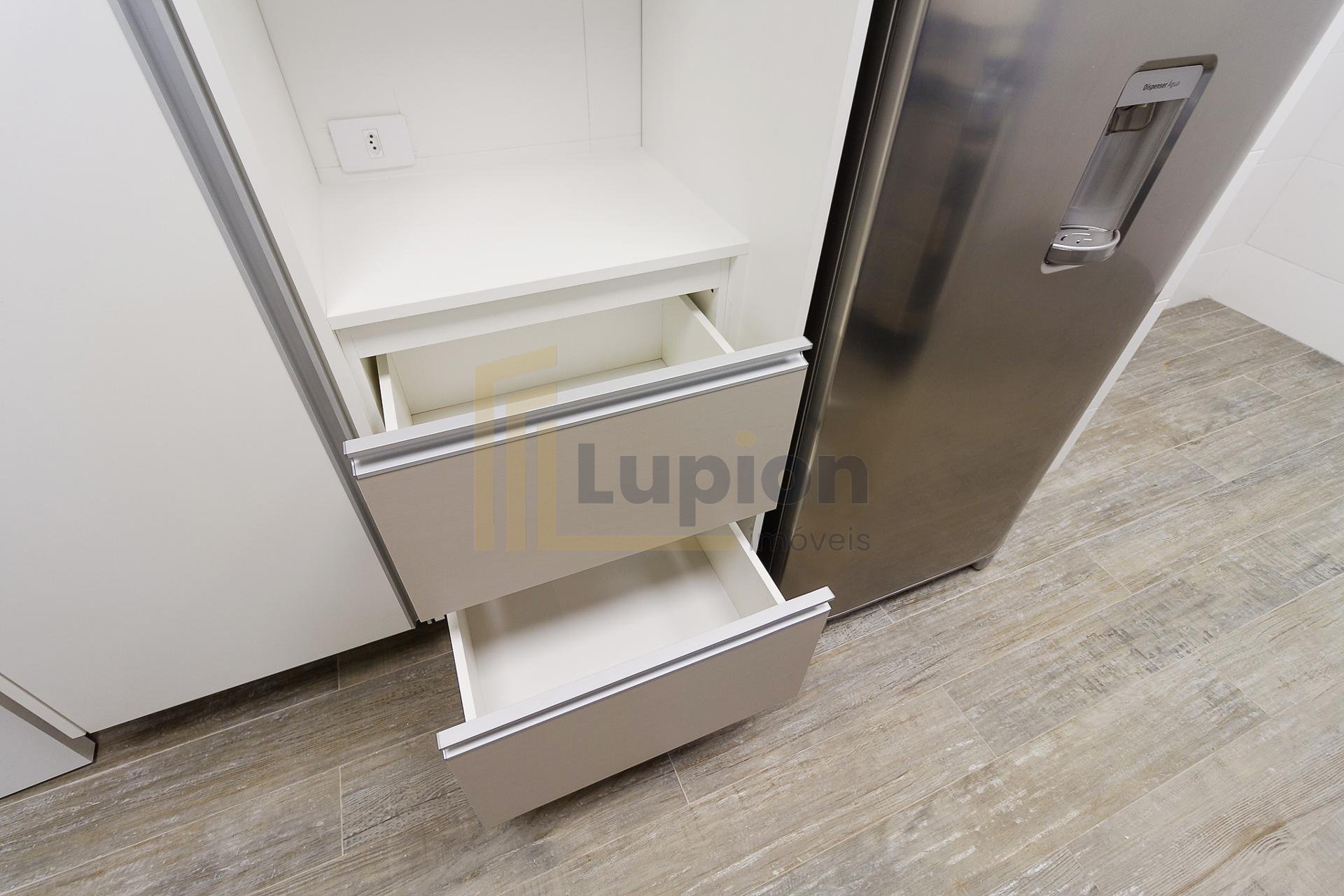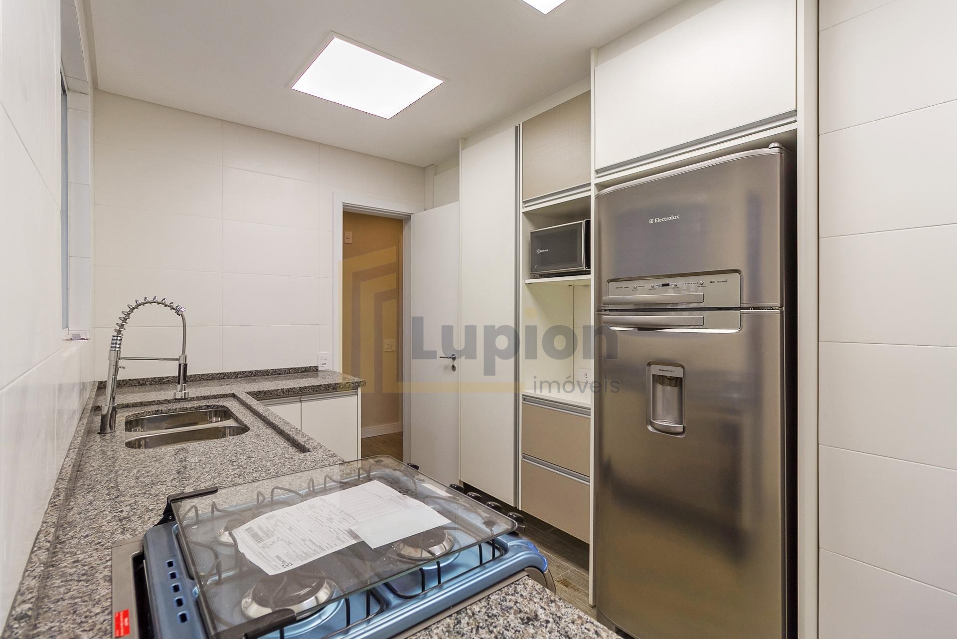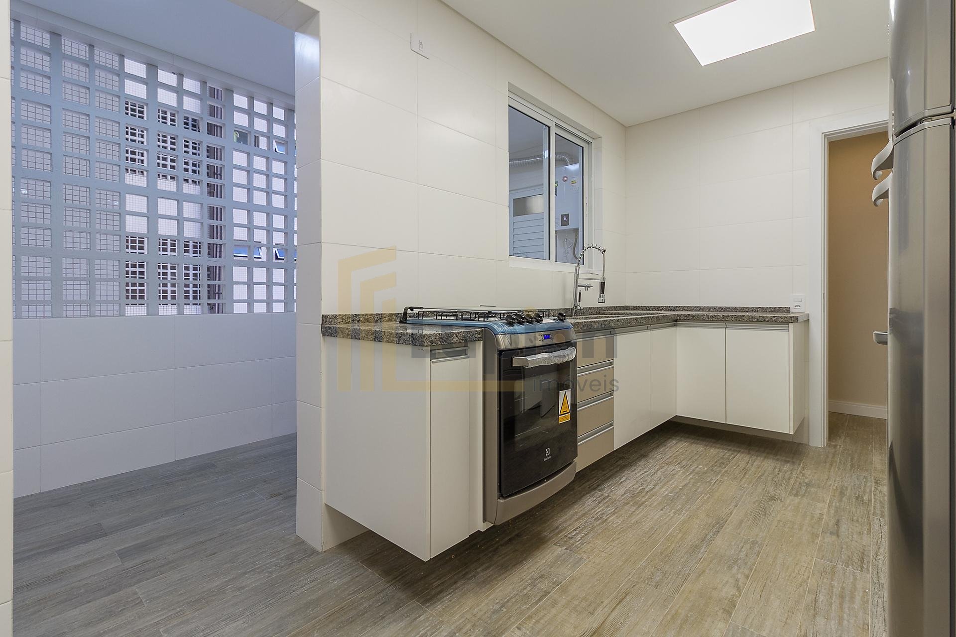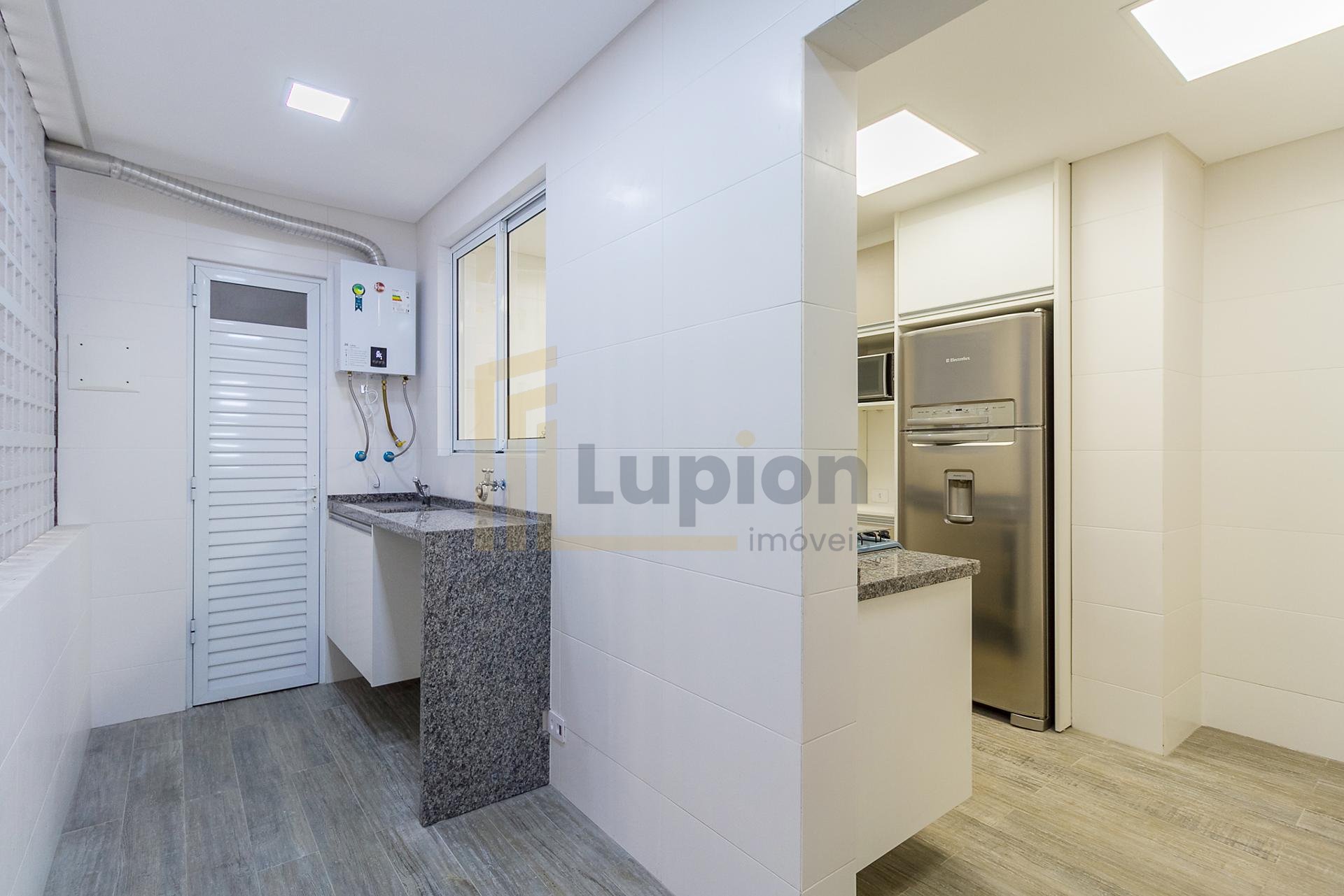 Com 101,42 m² de área privativa, o imóvel é bem ventilado e iluminado. Possui três quartos, sendo uma suíte com armários planejados, além de sala integrada, lavabo e cozinha equipada com armários.
