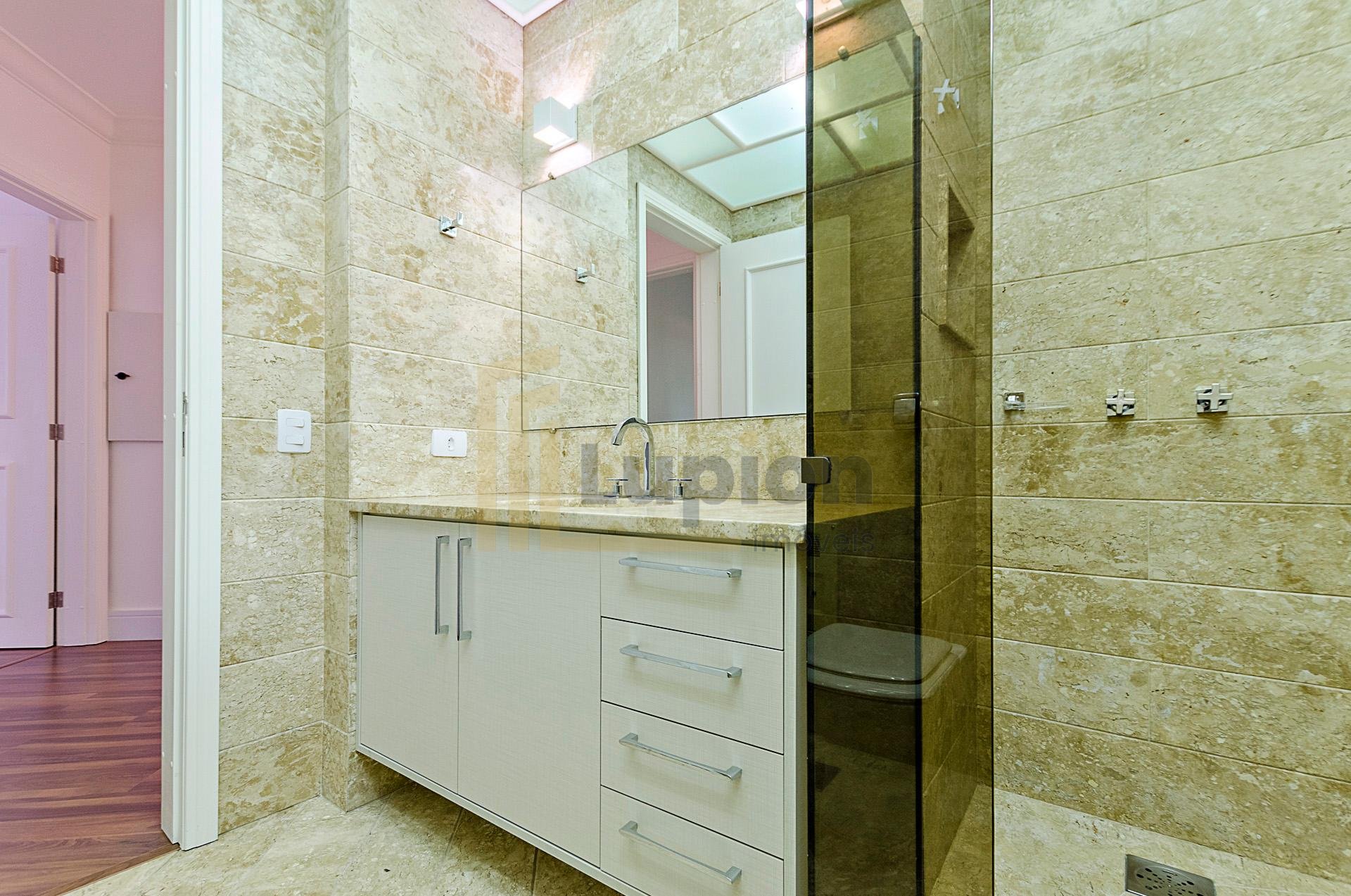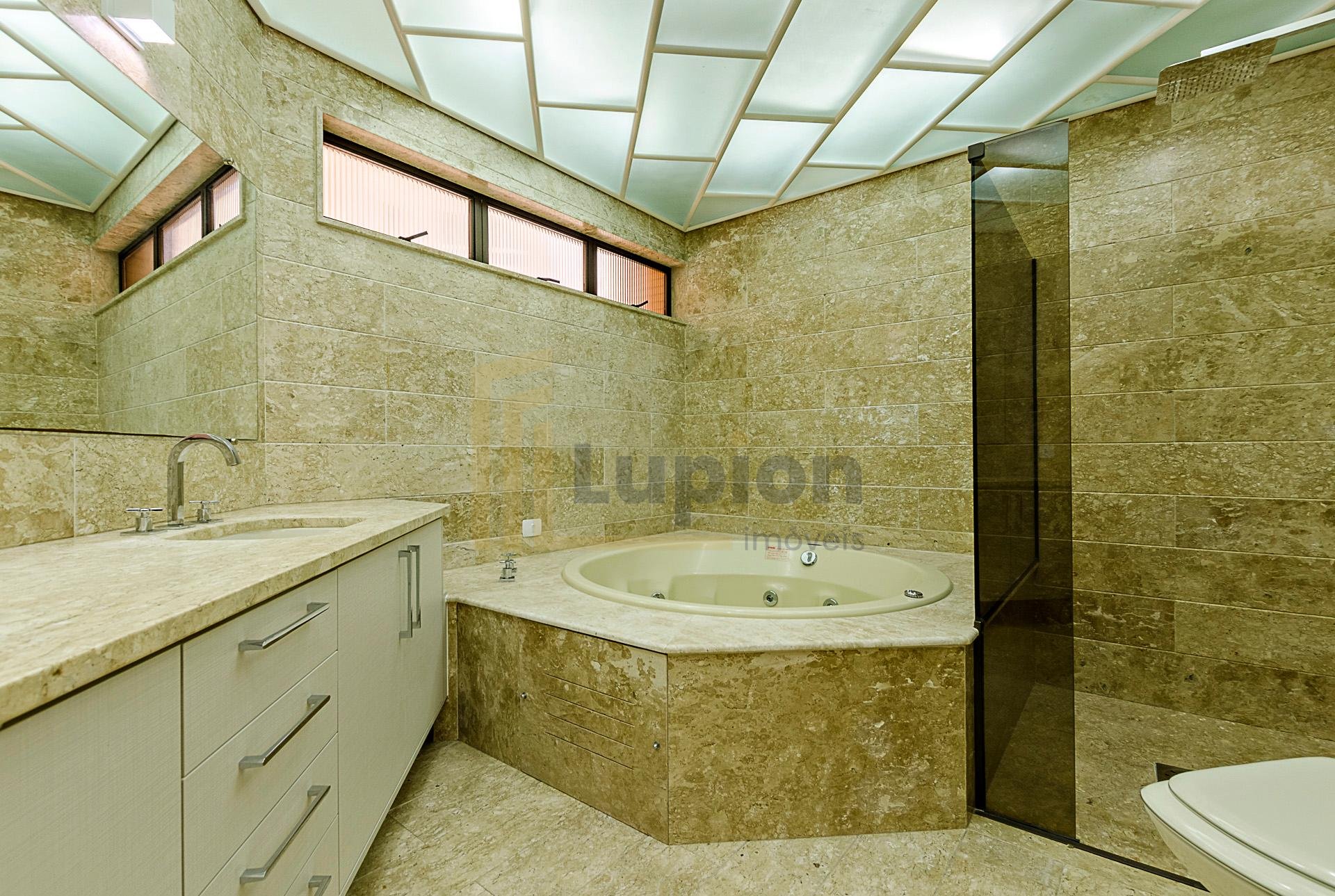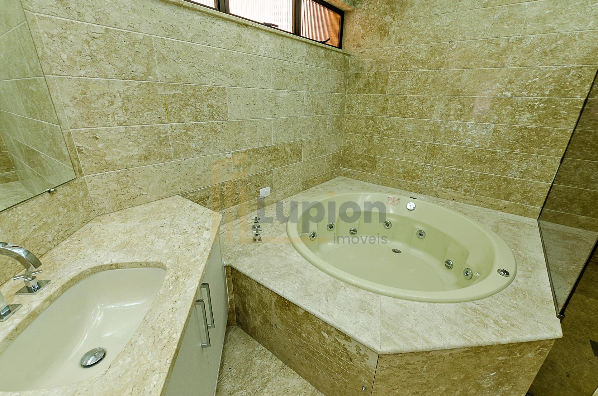 Quatro dormitórios com armários planejados, sendo duas suítes, júnior e máster com hidromassagem e closet, banheiros revestidos em mármore travertino.