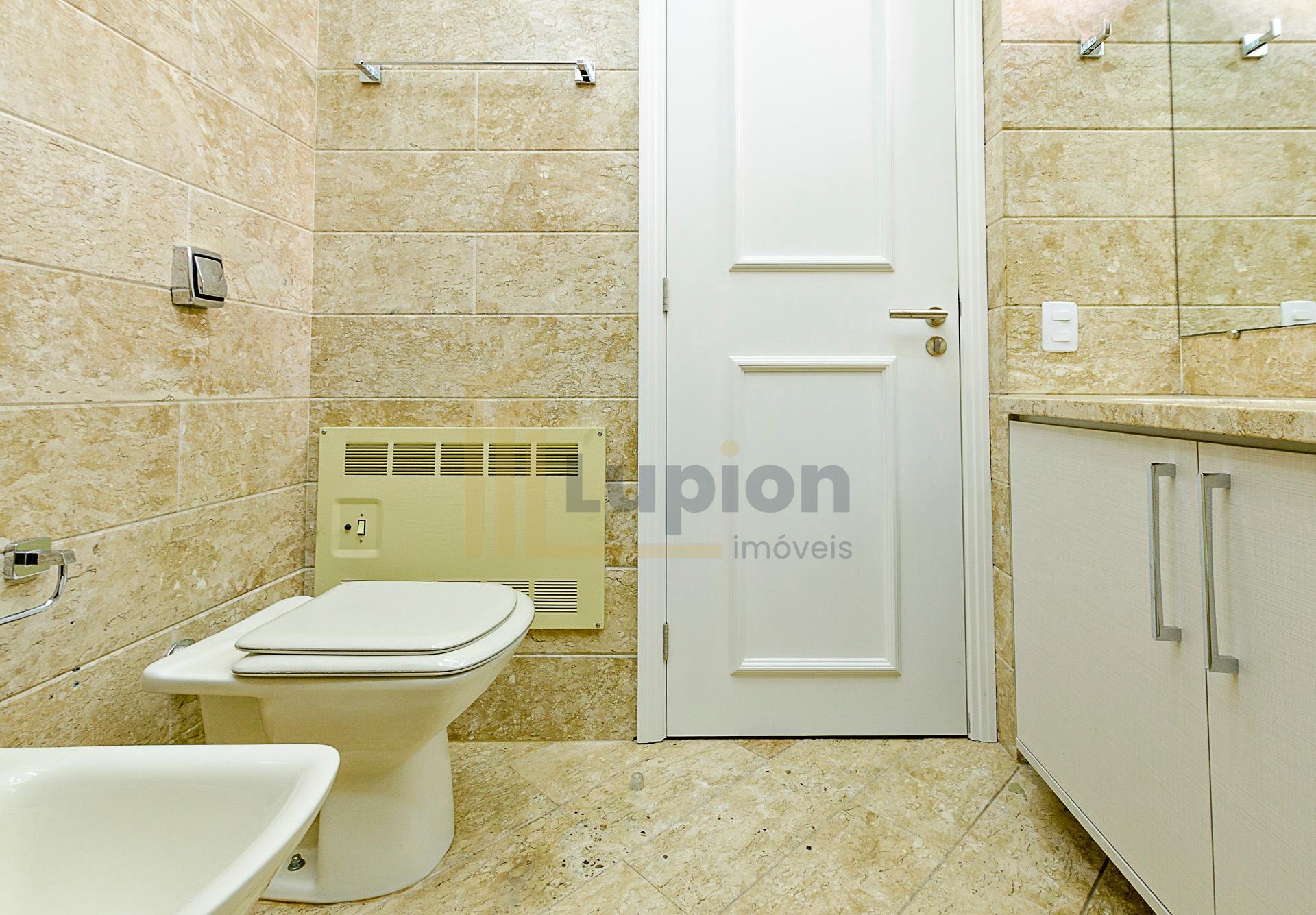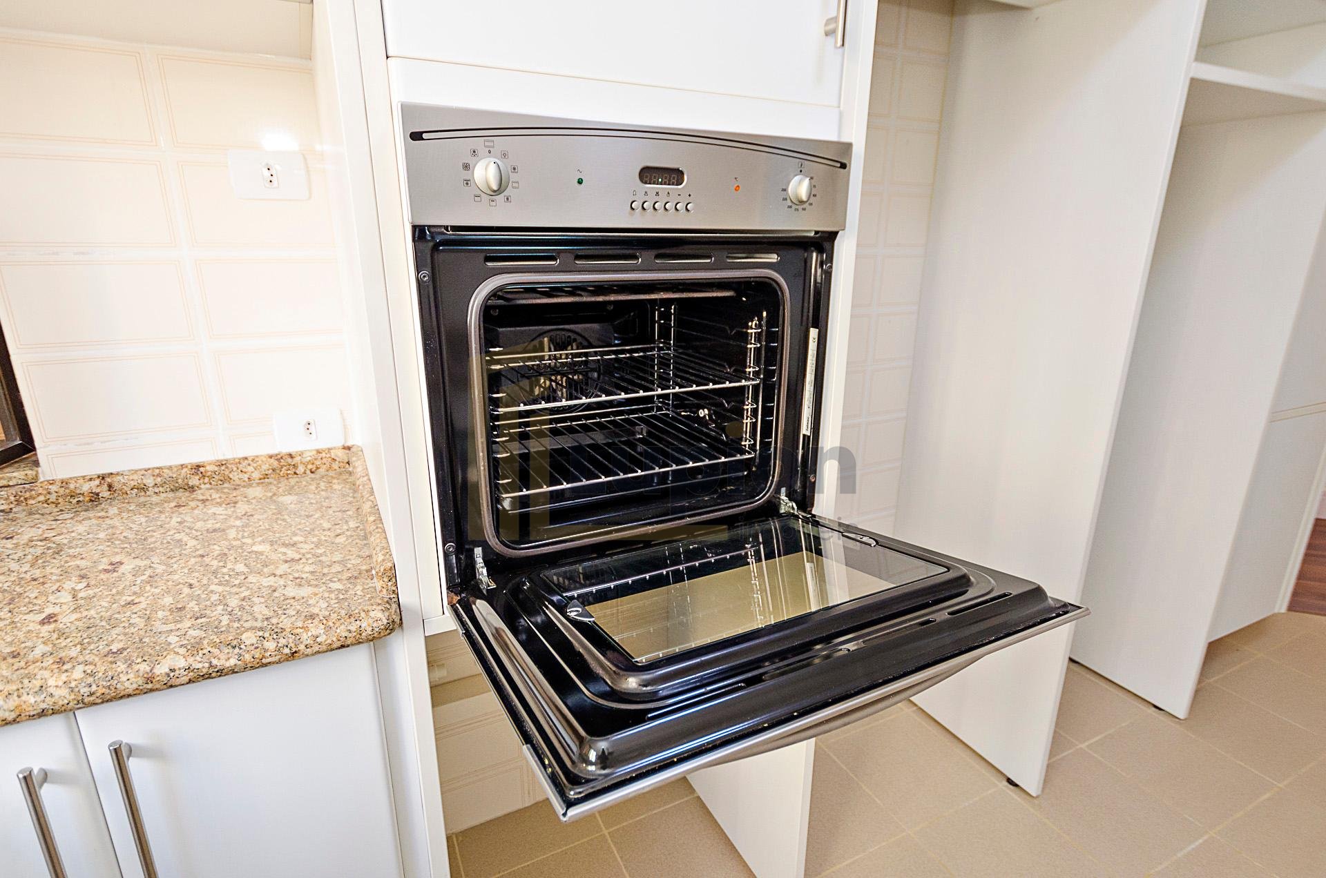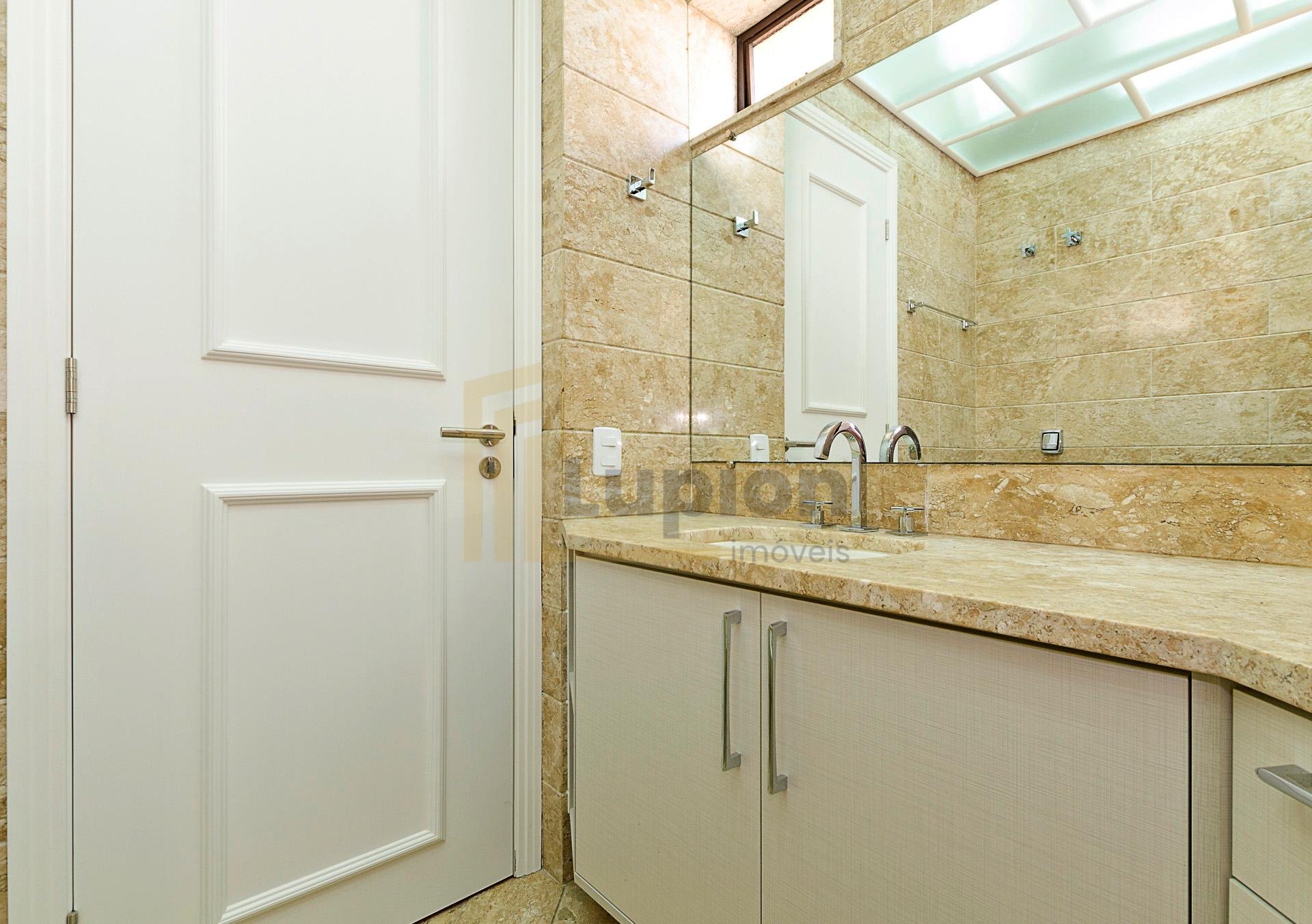 Quatro dormitórios com armários planejados, sendo duas suítes, júnior e máster com hidromassagem e closet, banheiros revestidos em mármore travertino.