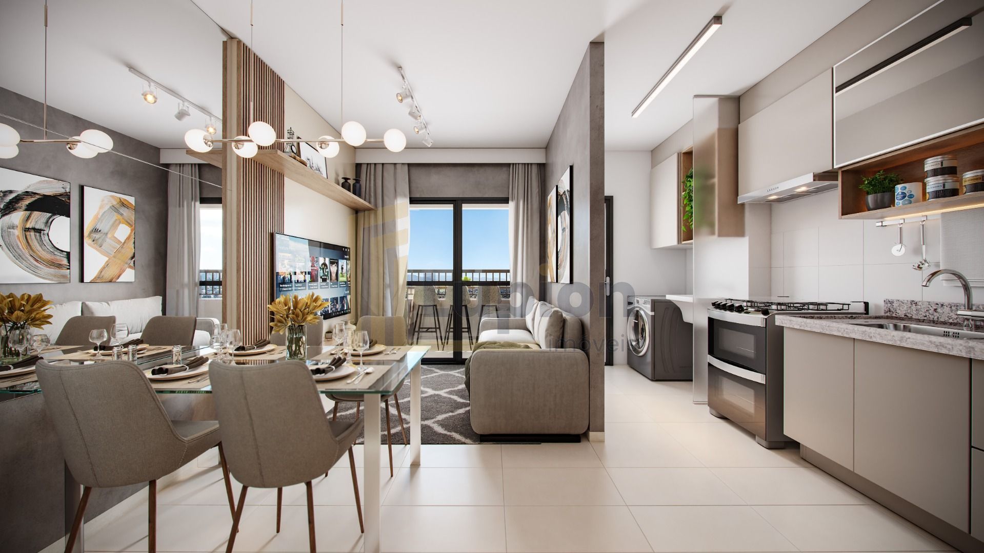 Living integrado (sala de estar e jantar), criando amplitude e conforto no dia a dia