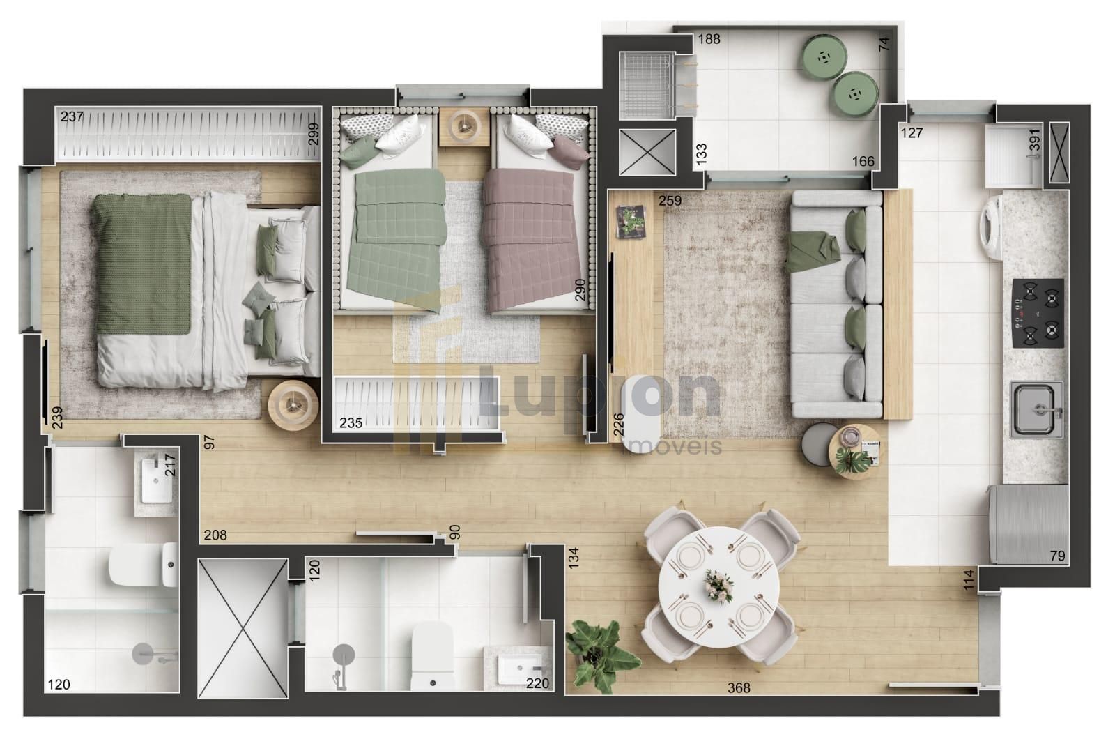 54,22m² de área privativa com ótima distribuição dos ambientes.