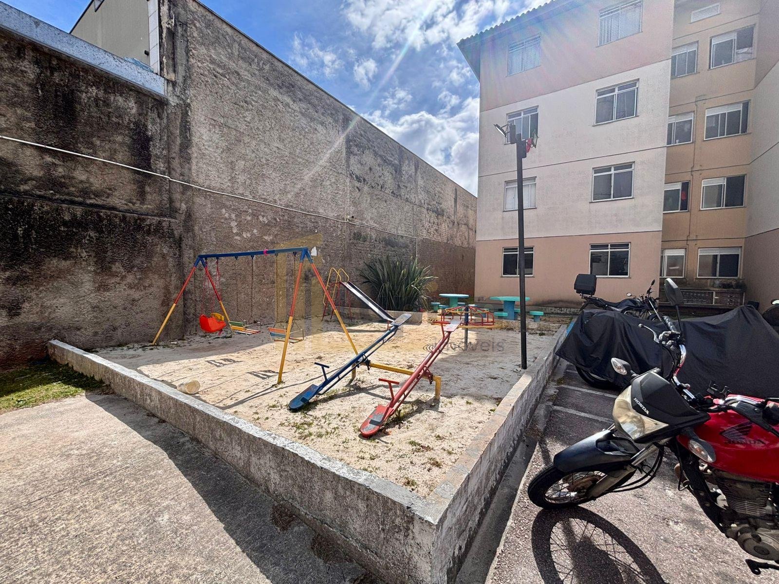 Condomínio com lazer: playground e salão de festas equipado com churrasqueira, geladeira e pia.