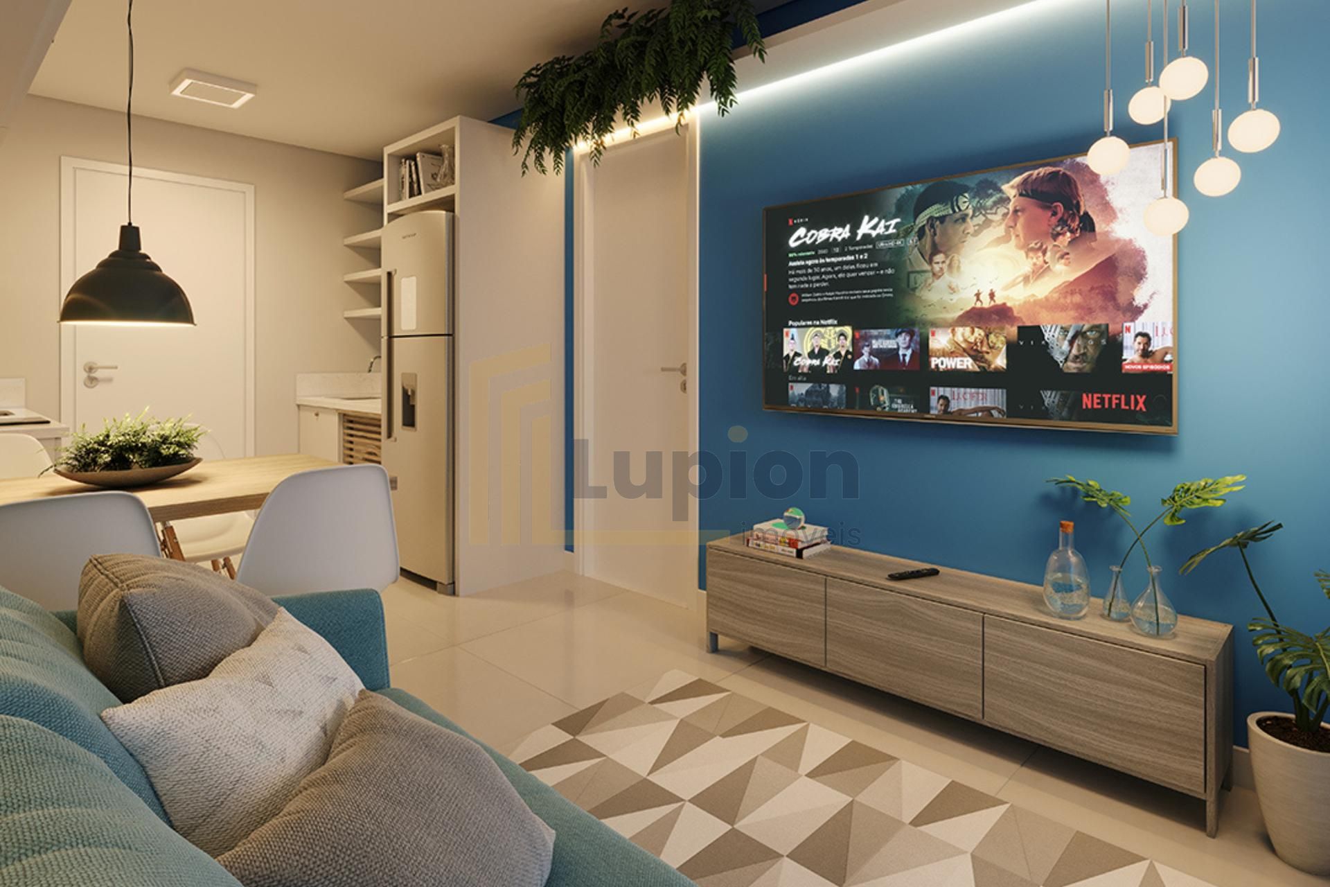 Apartamento novo no Edifício Plus Portão em Curitiba, com 31,73m² bem distribuídos entre sala, cozinha, 1 quarto e 1 banheiro.