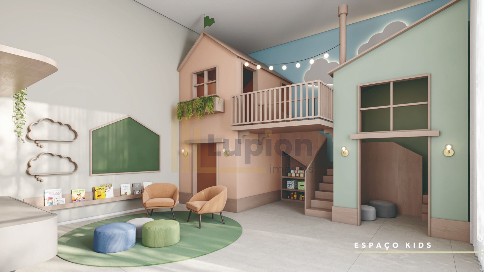Espaço kids, seguro e divertido, projetado para crianças de diversas faixas etárias.