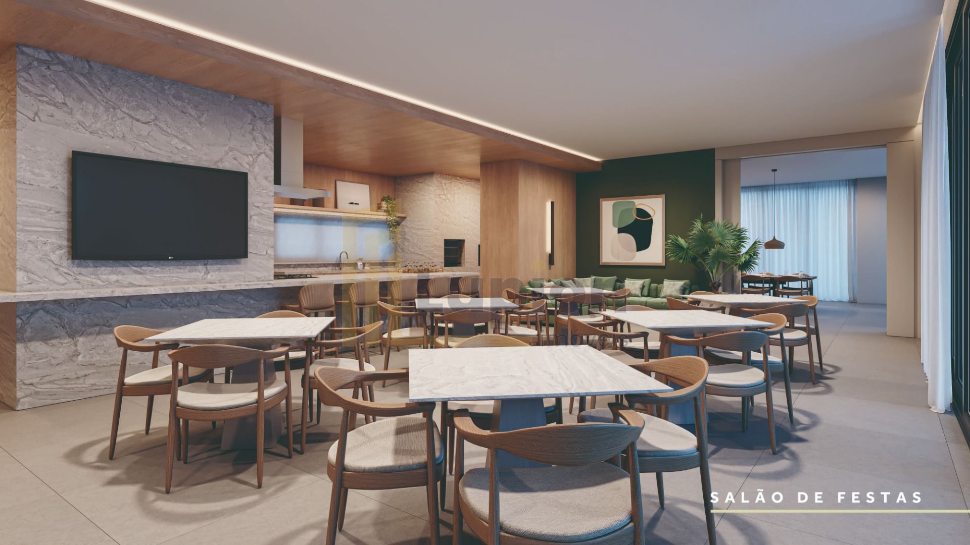 Salões de festas decorados, perfeitos para celebrações familiares e eventos sociais.