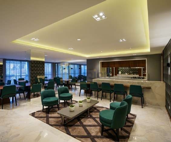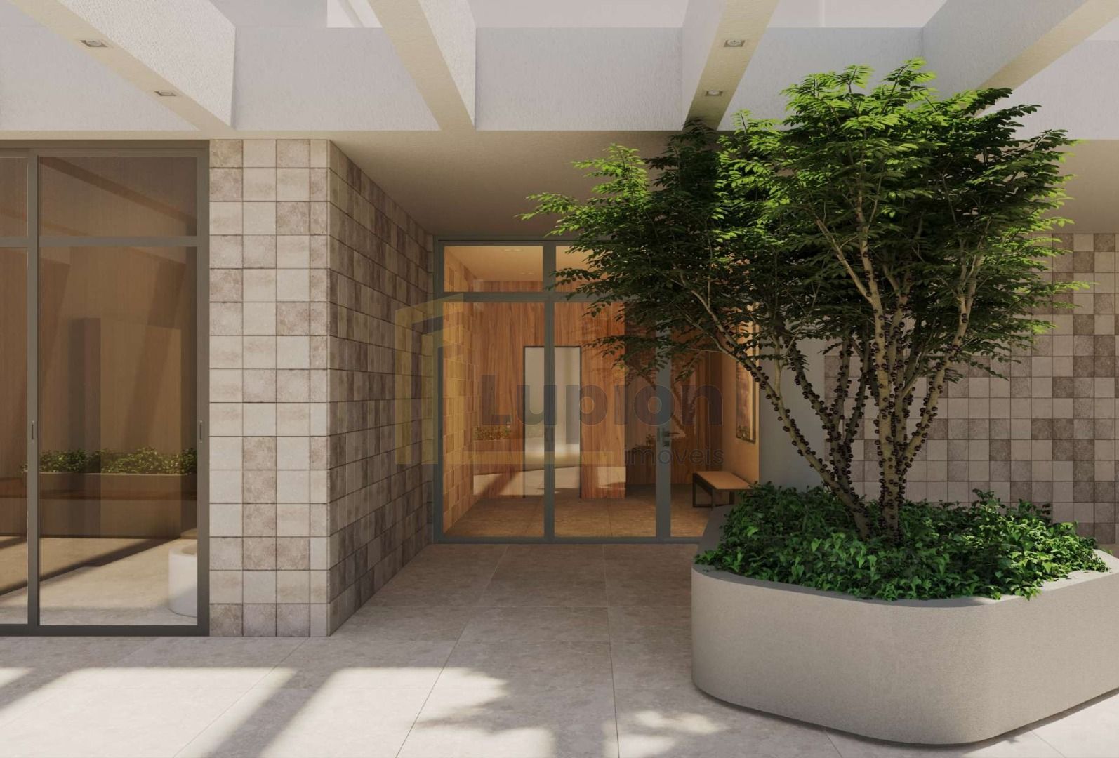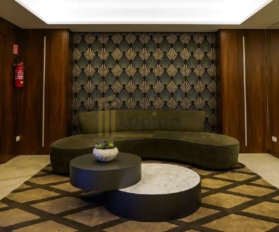 Hall de entrada imponente, elevadores modernos e elegante boulevard interno.