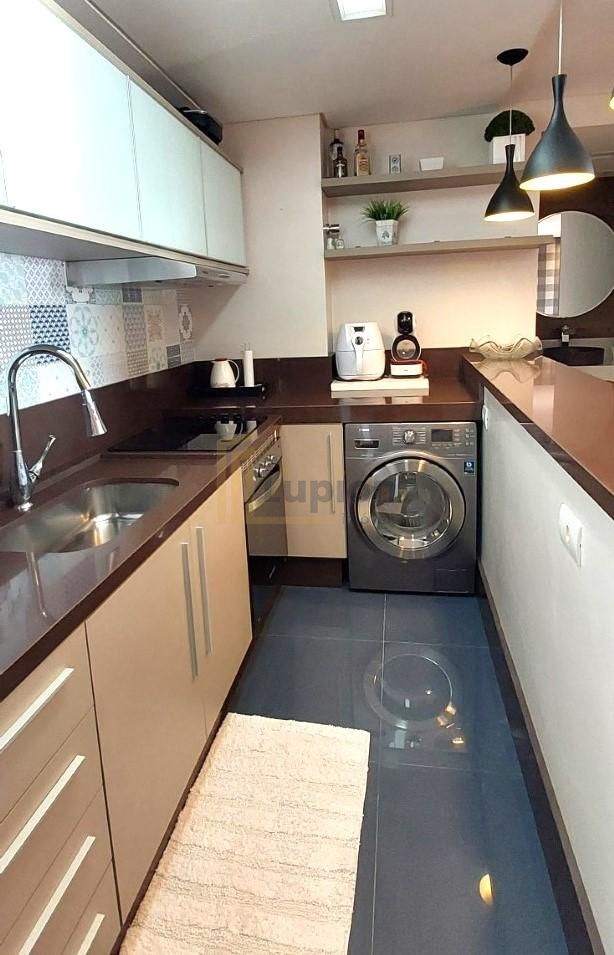 Ficarão todos os armários planejados, cama casal, sofá, abajur, cortinas, balcão, cadeiras alta, geladeira, maquina lavar roupa, fogão Cooktop, exaustor, forno, luminárias, mesa com 2 cadeiras, quadros. Tudo em estado de conservação impecável.