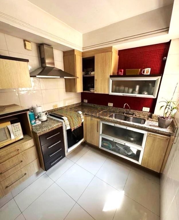 - Cozinha com armários e coifa.