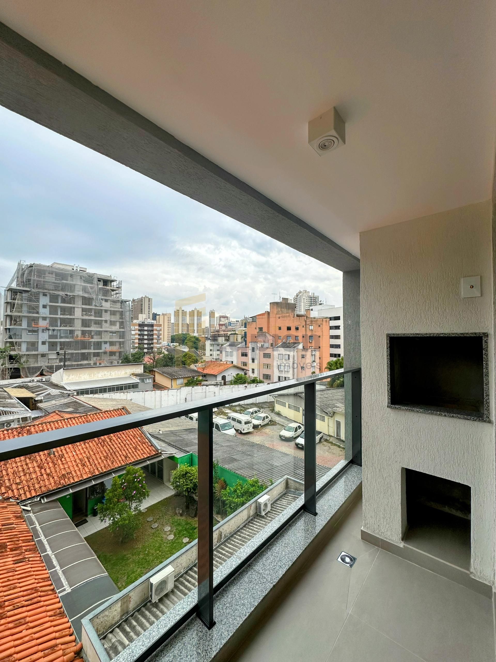 Apartamentos com ampla sacada com churrasqueira a carvão.