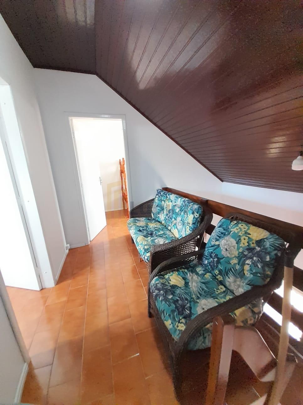 3 quartos, sendo 1 suíte, com ventiladores em todos os cômodos. Um dos quartos está localizado no pavimento inferior, ideal para crianças ou hóspedes.