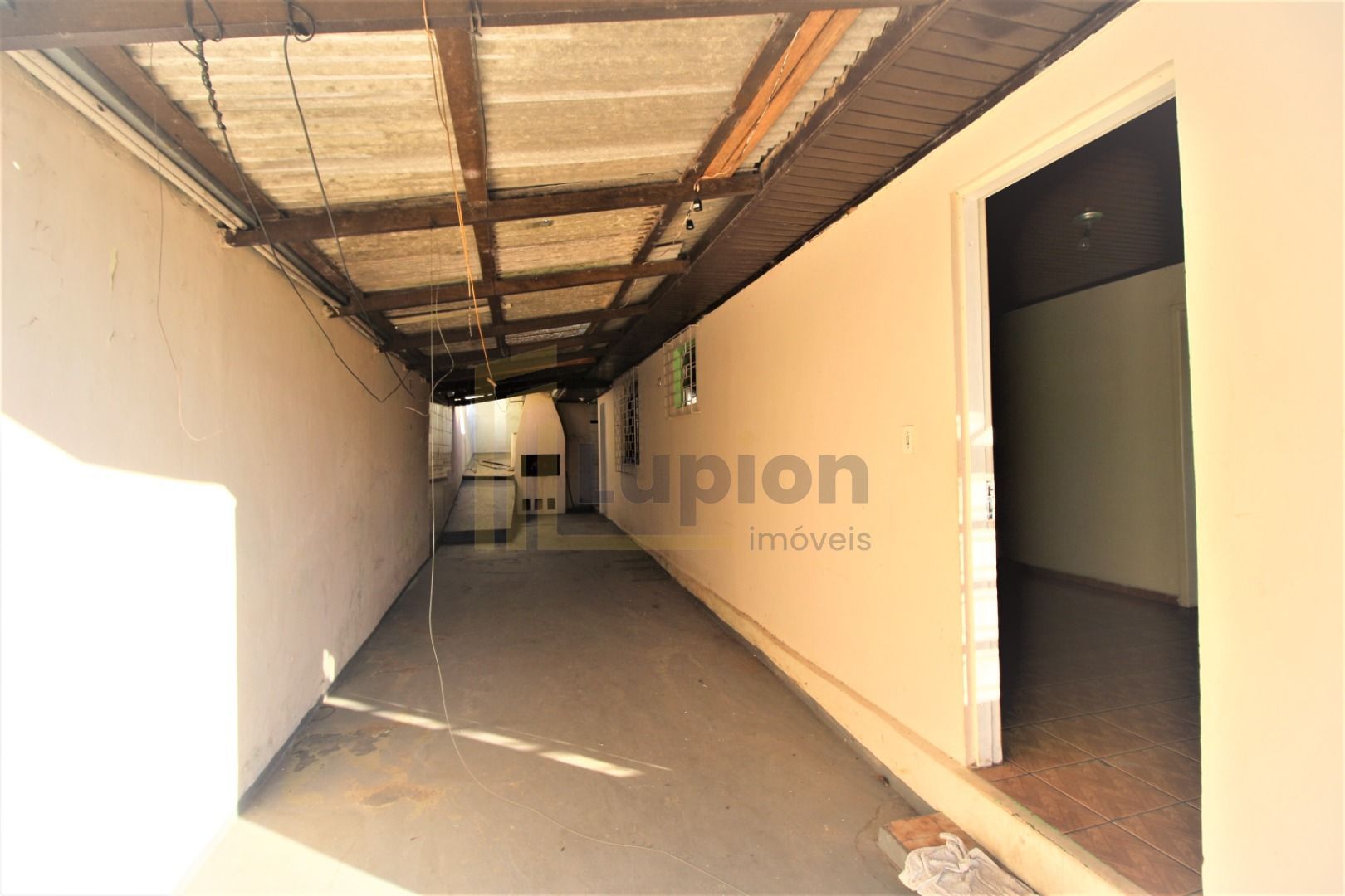 Amplo pátio lateral coberto que pode ser usado como área de lazer, jardim ou espaço para pets