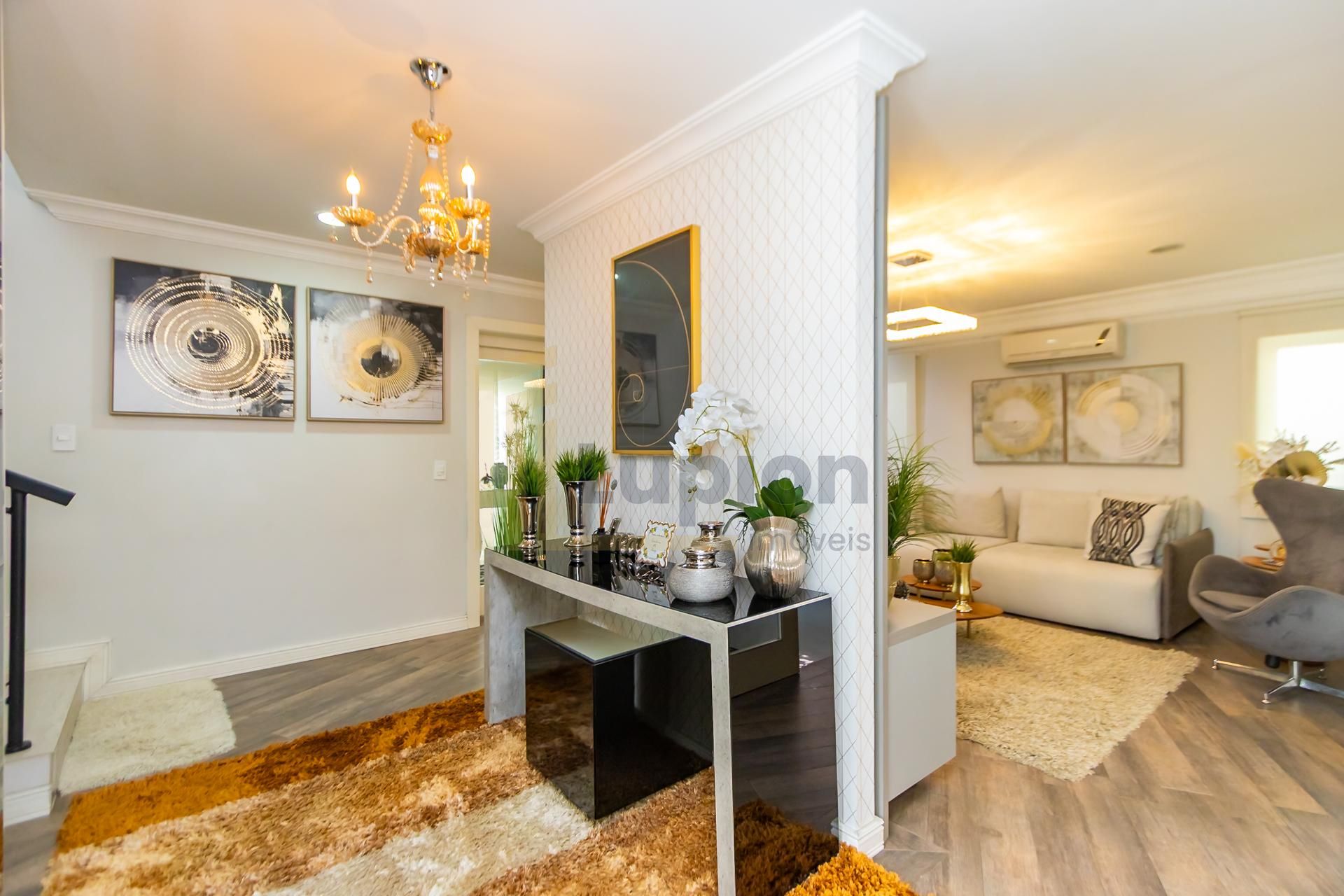 O interior é simplesmente deslumbrante, com espaços amplos, acabamento refinado e piso de tábuas corridas em todos os ambientes. A cozinha recém-reformada combina funcionalidade e design moderno, enquanto a área gourmet com churrasqueira é perfeita para momentos inesquecíveis com a família e amigos.