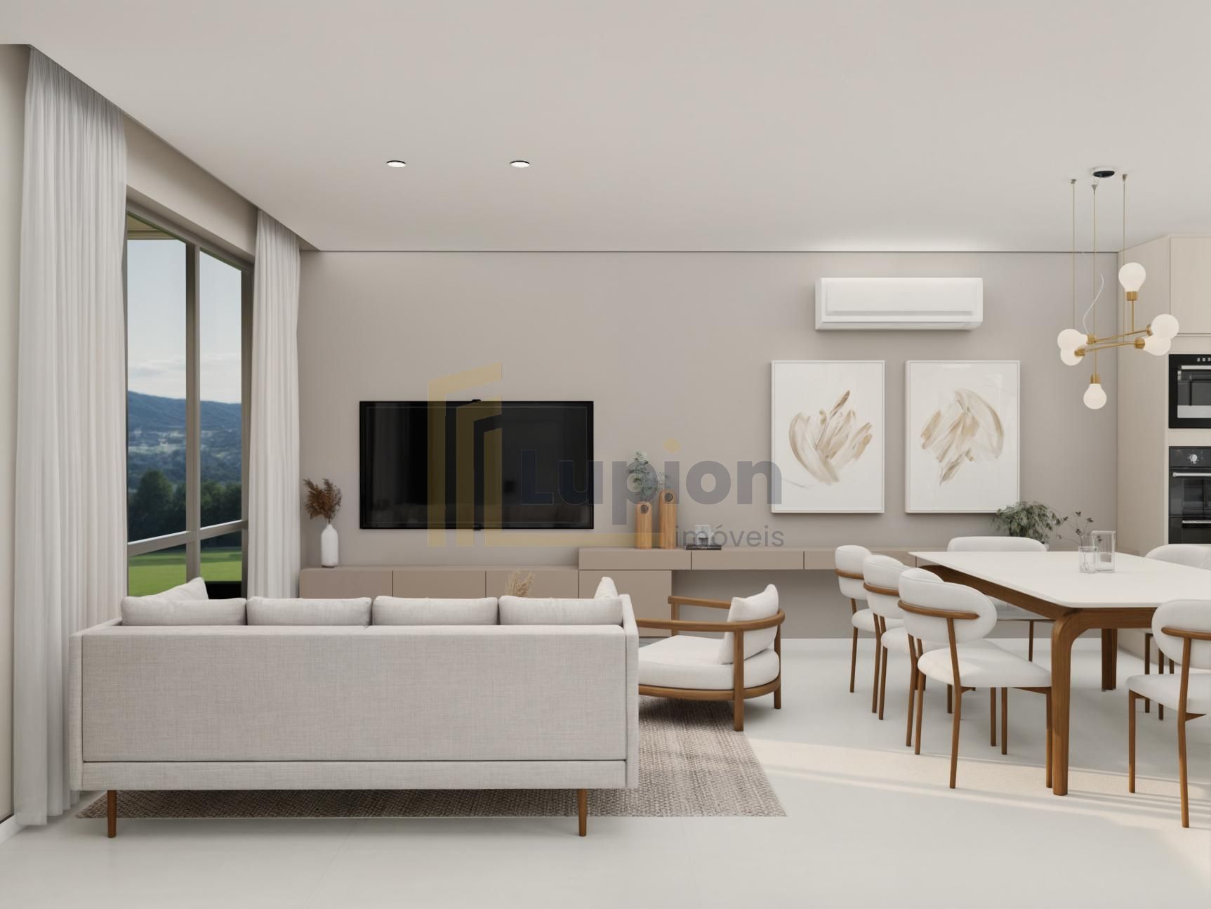 Terreo com sala de estar, integrada com jantar, espaço adega, lavabo e cozinha com varanda gourmet, churrasqueira a carvao, e um amplo quintal com espaço para jacuzzi e grama.