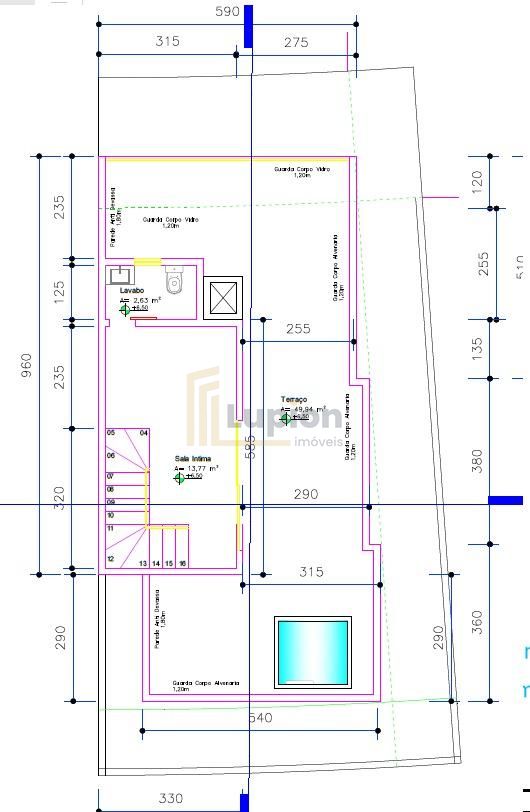 160m² area construida + 50m²terraço descoberto