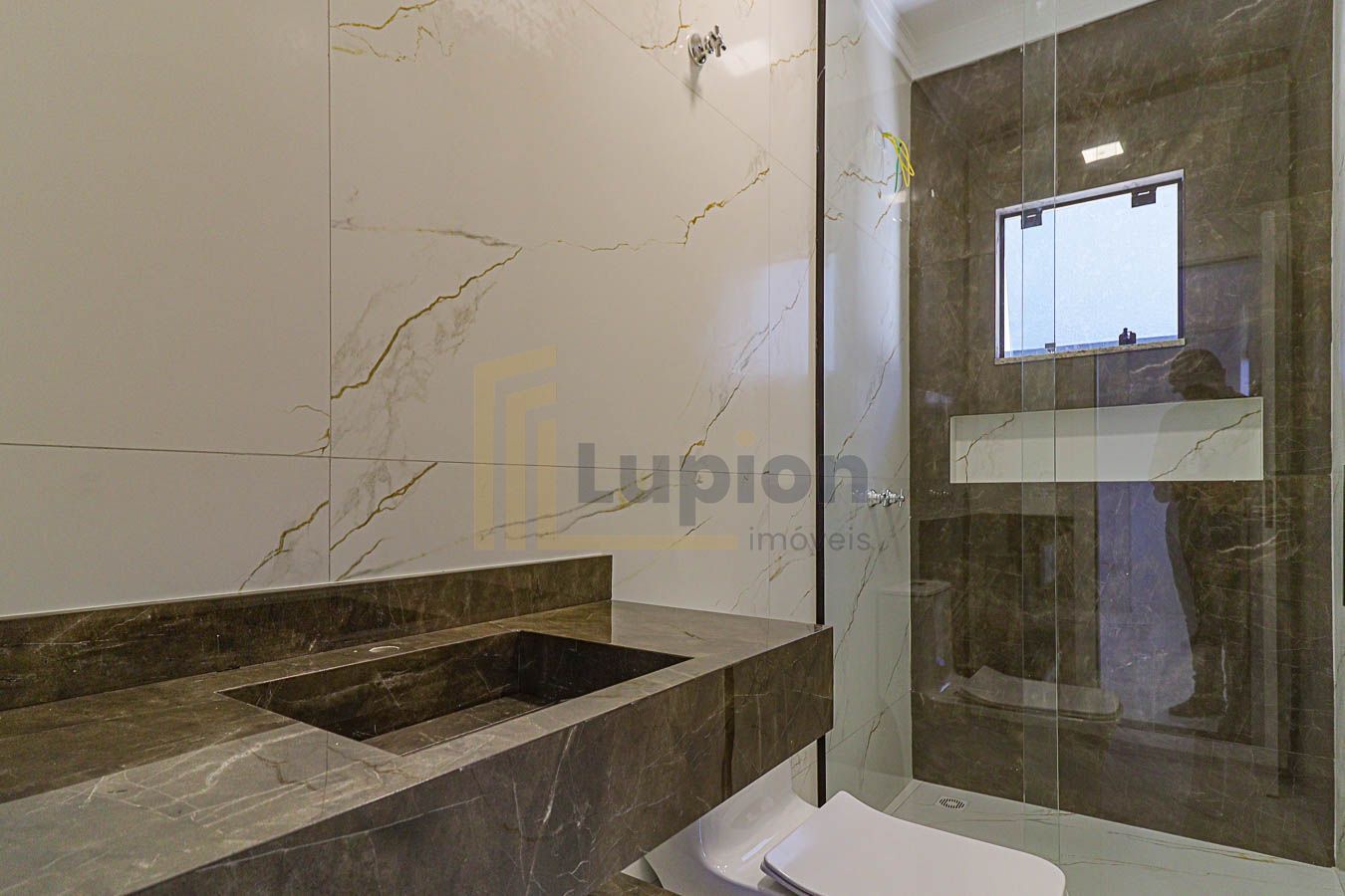 -Banheiros: 3 no total (1 lavabo, 1 social e 1 da suíte), todos com pias esculpidas em porcelanato.