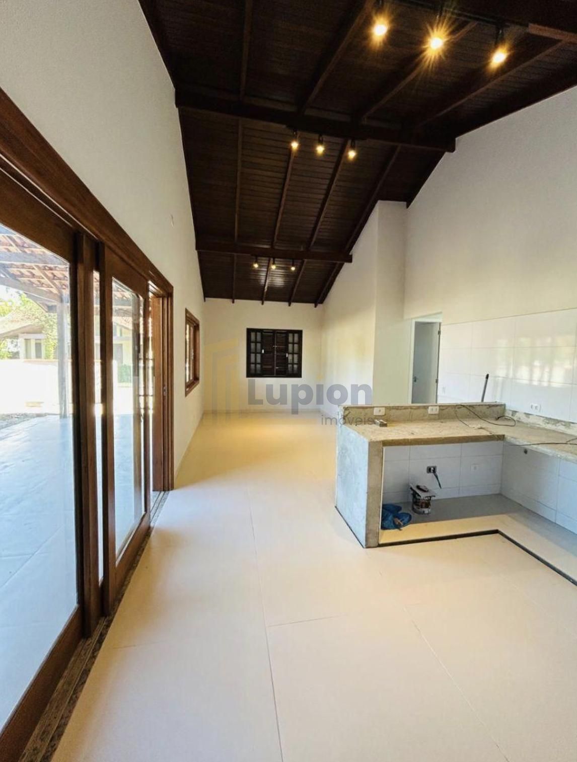 - Pé-direito alto na área social, com forro em madeira aparente;
