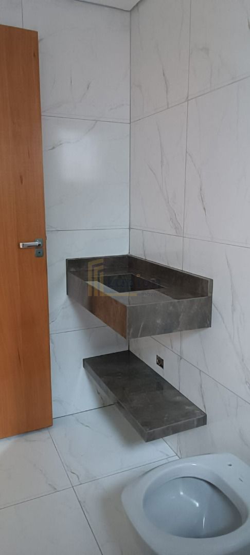 Banheiro Social Moderno: Funcional e bem iluminado, com acabamentos de qualidade, proporcionando praticidade no dia a dia.