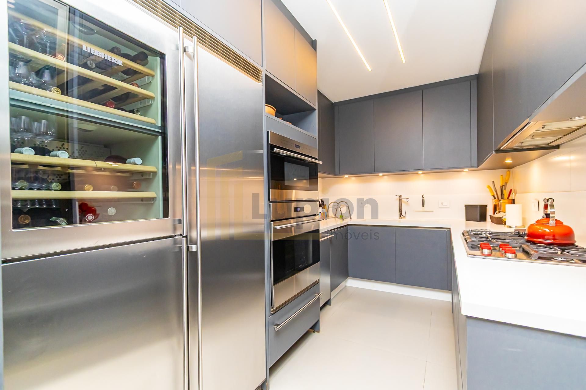 Geladeira Liebherr com adega embutida.