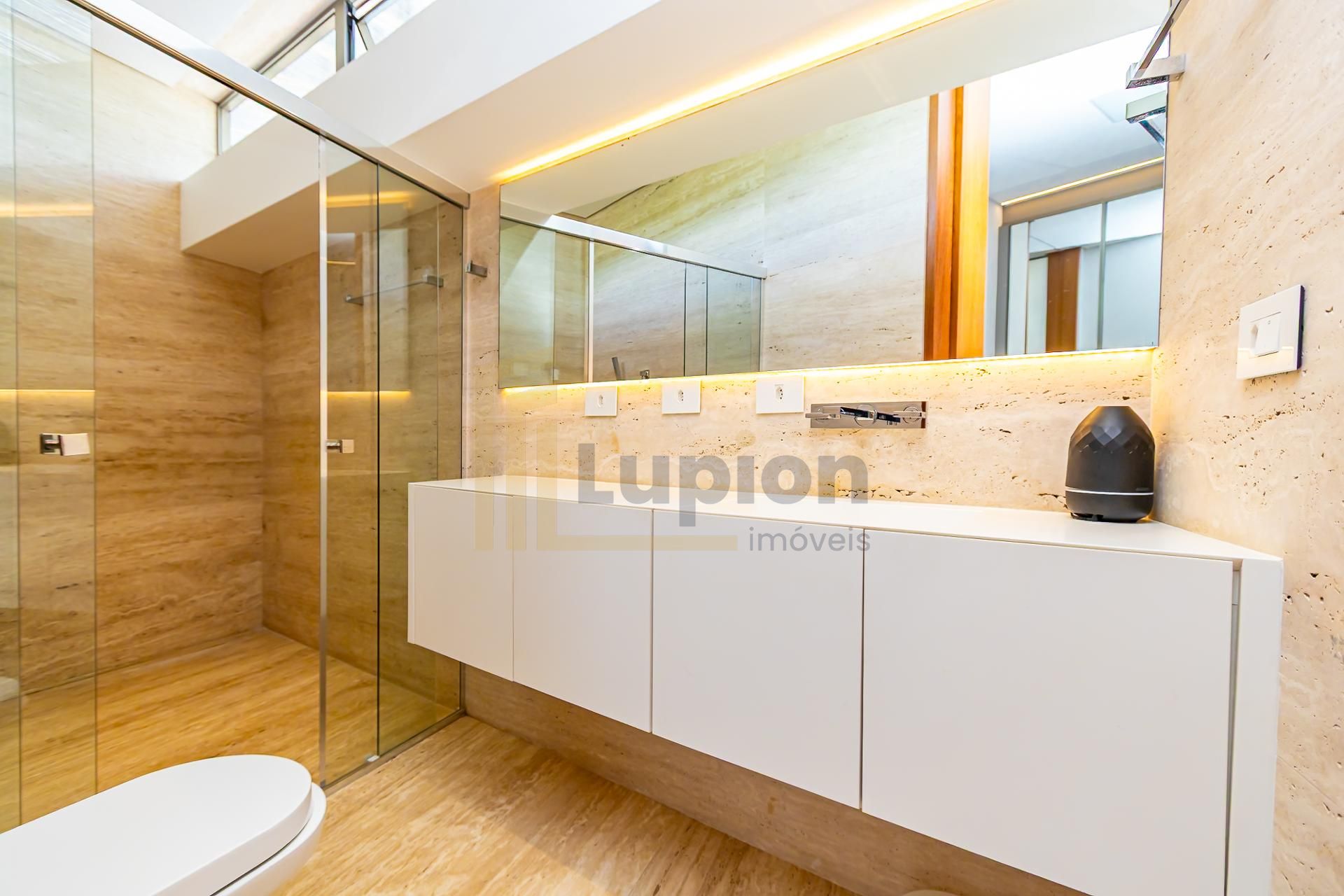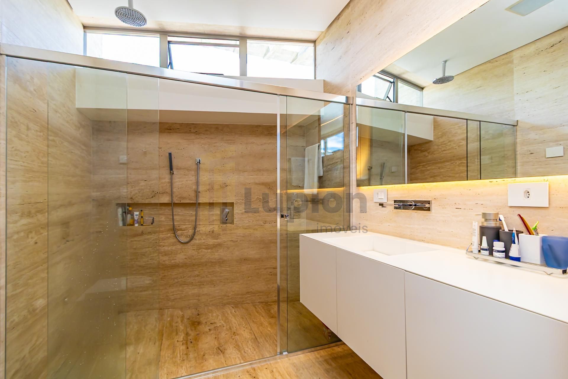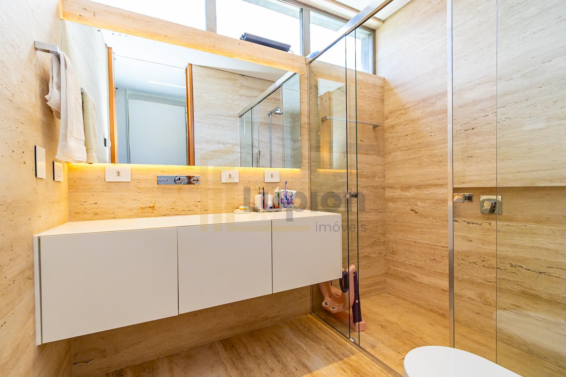 4 suítes, sendo a master com closet e banheiro Sr / Sra separados, com desembaçador nos espelhos.