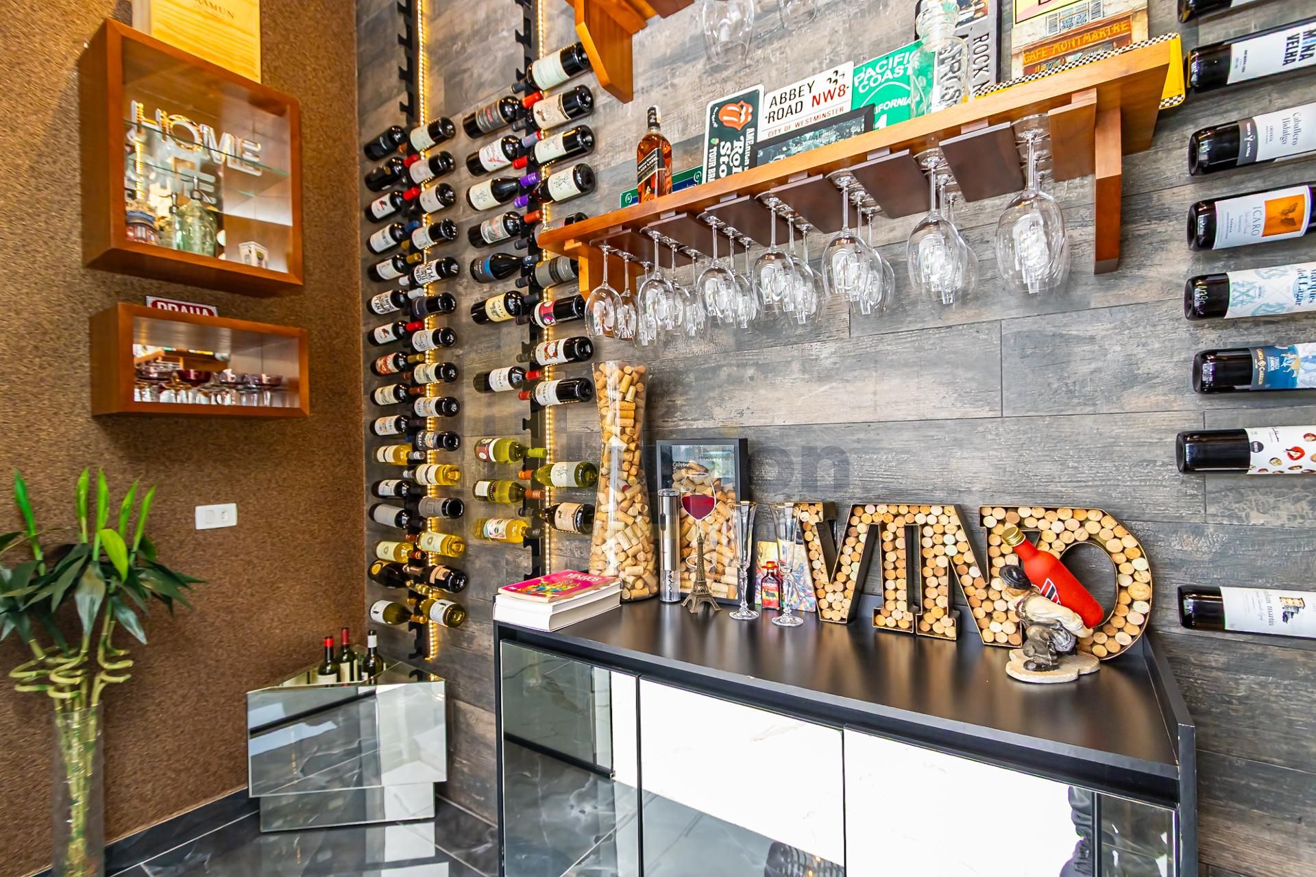 Espaço com adega climatizada para 200 garrafas