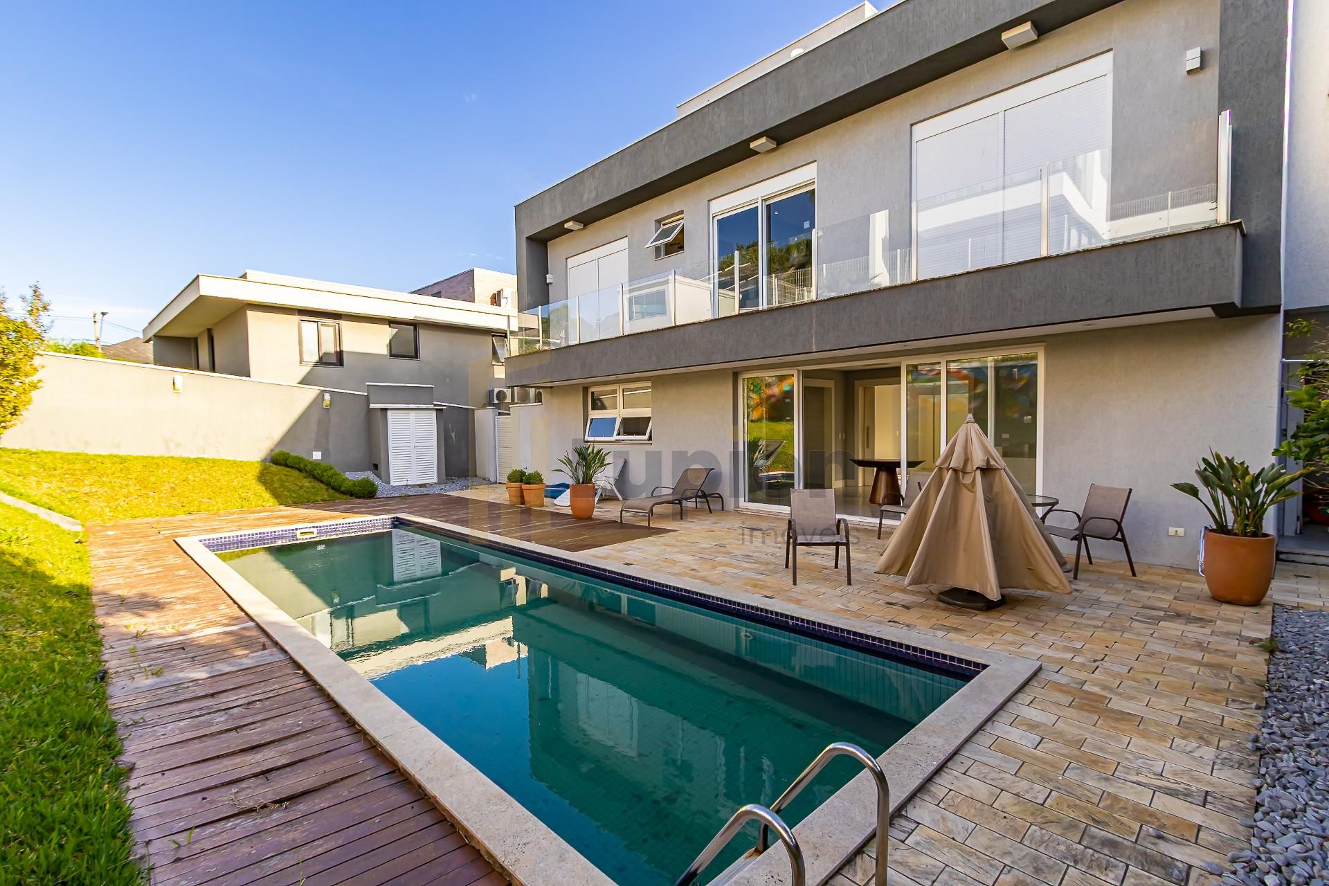 Residência com arquitetura contemporânea, localizada em posição privilegiada, com frente para o lago e fundos para área de reserva, garantindo privacidade e vista definitiva.