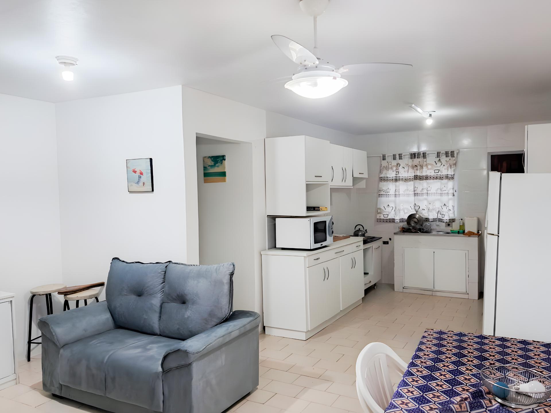 Detalhes do imóvel: 63m² de área construída + 35m² de jardim privativo. 2 quartos amplos (ambos com cama de casal). 1 banheiro espaçoso. Cozinha integrada com armários. Sala de jantar e estar aconchegante, com sofás novos e cortinas. Geladeira e cooktop inclusos. 1 vaga de garagem. Entrega semi mobiliado.