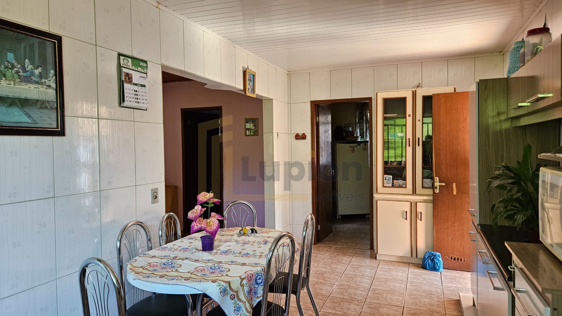 Interior com forro de madeira e piso cerâmico, garantindo conforto e durabilidade.