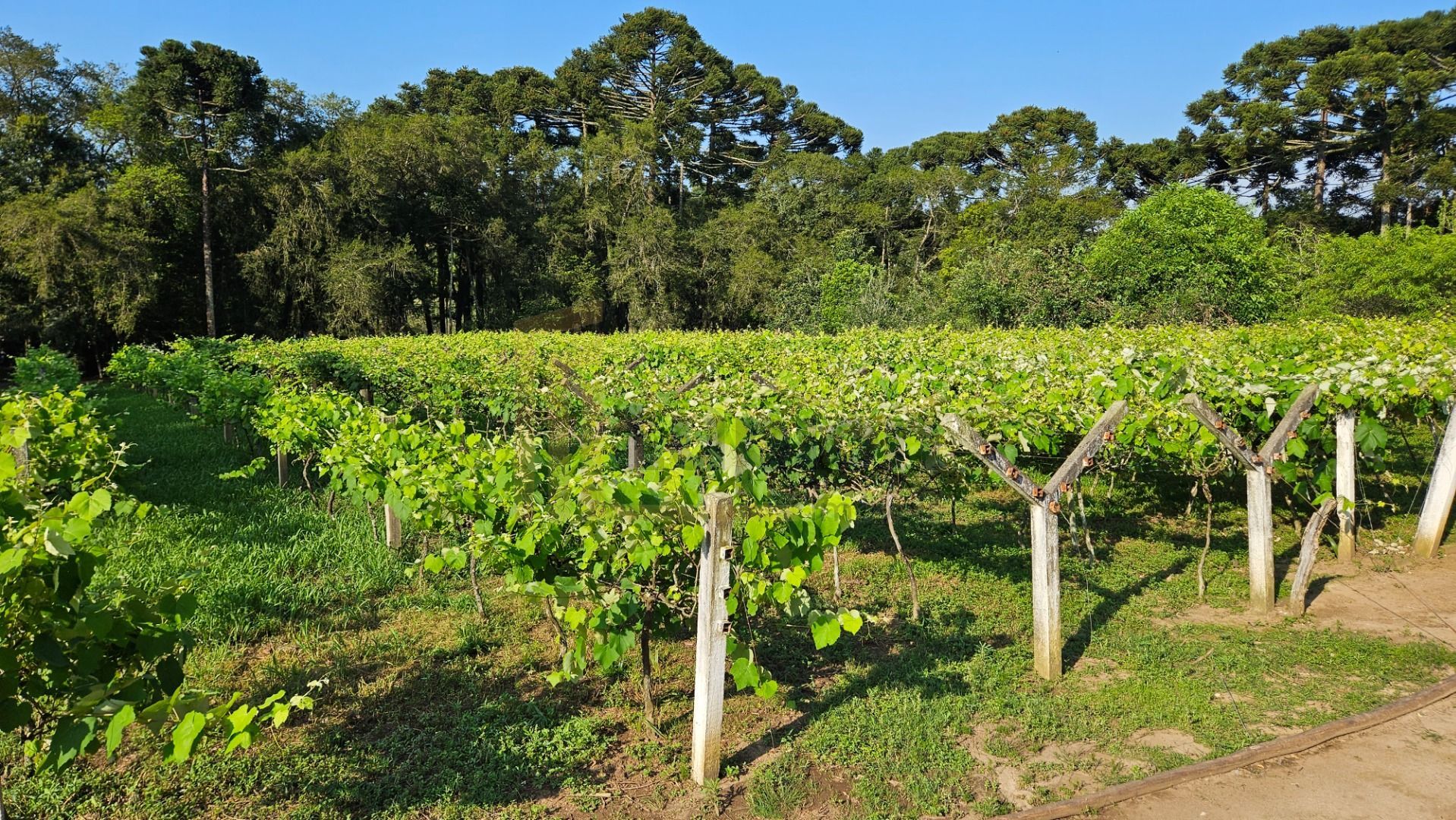 Parreiral:Mais de 600 pés de uva, oferecendo deliciosas variedades de uvas para consumo próprio ou para a produção de sucos e vinhos caseiros.