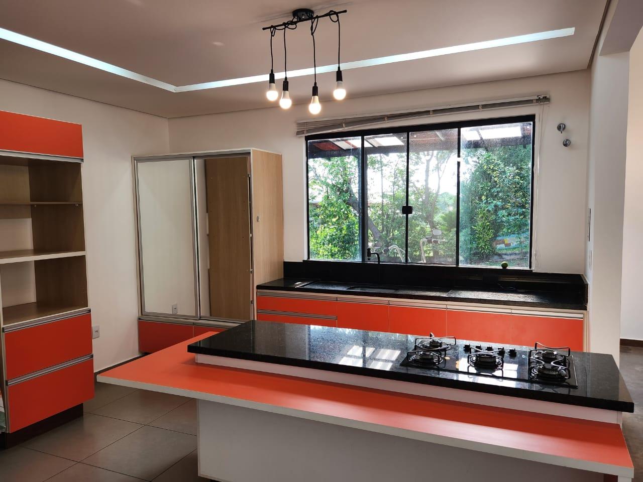 A cozinha é totalmente equipada, com armários sob medida, excelente aproveitamento de espaço e uma ilha central que integra funcionalidade e design, perfeita para o dia a dia ou para momentos especiais em família. O imóvel também dispõe de sala de cinema ou escritório, permitindo múltiplas possibilidades de uso, além de lavanderia independente, lavabo e depósito.