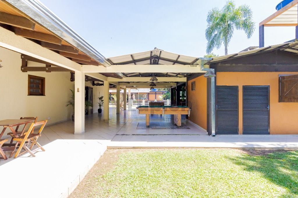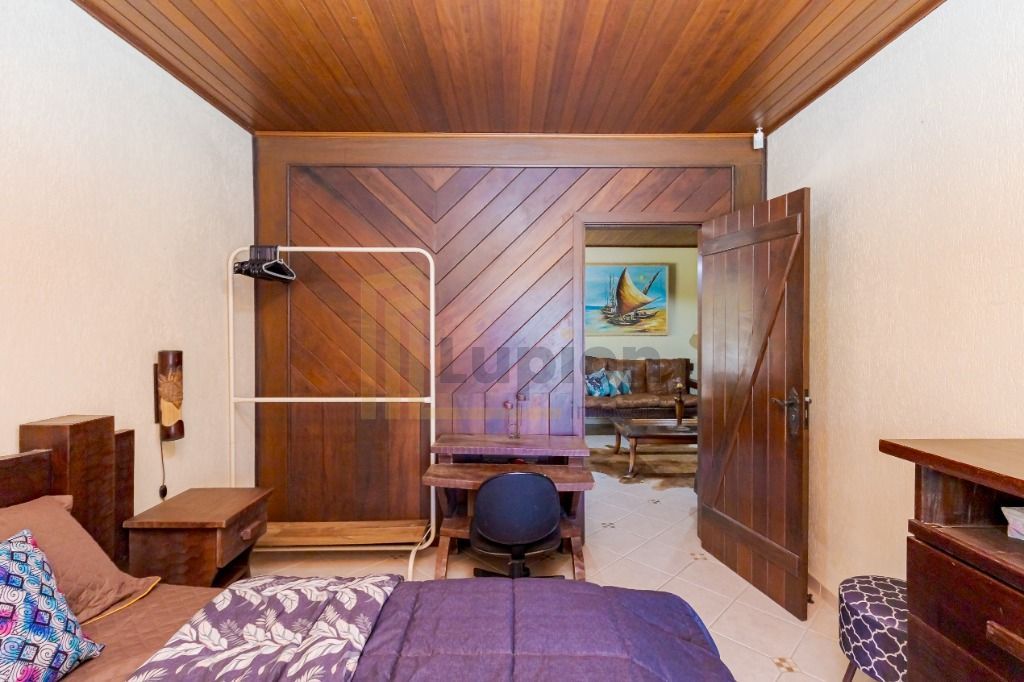 Com 480m², contendo sala ampla, cozinha, 4 banheiros, 4 quartos (sendo 1 suíte). 1 churrasqueira com área de serviço. Portas externas duplas e postas internas em madeira imbuia, coberturas da varanda com madeira itauba.
