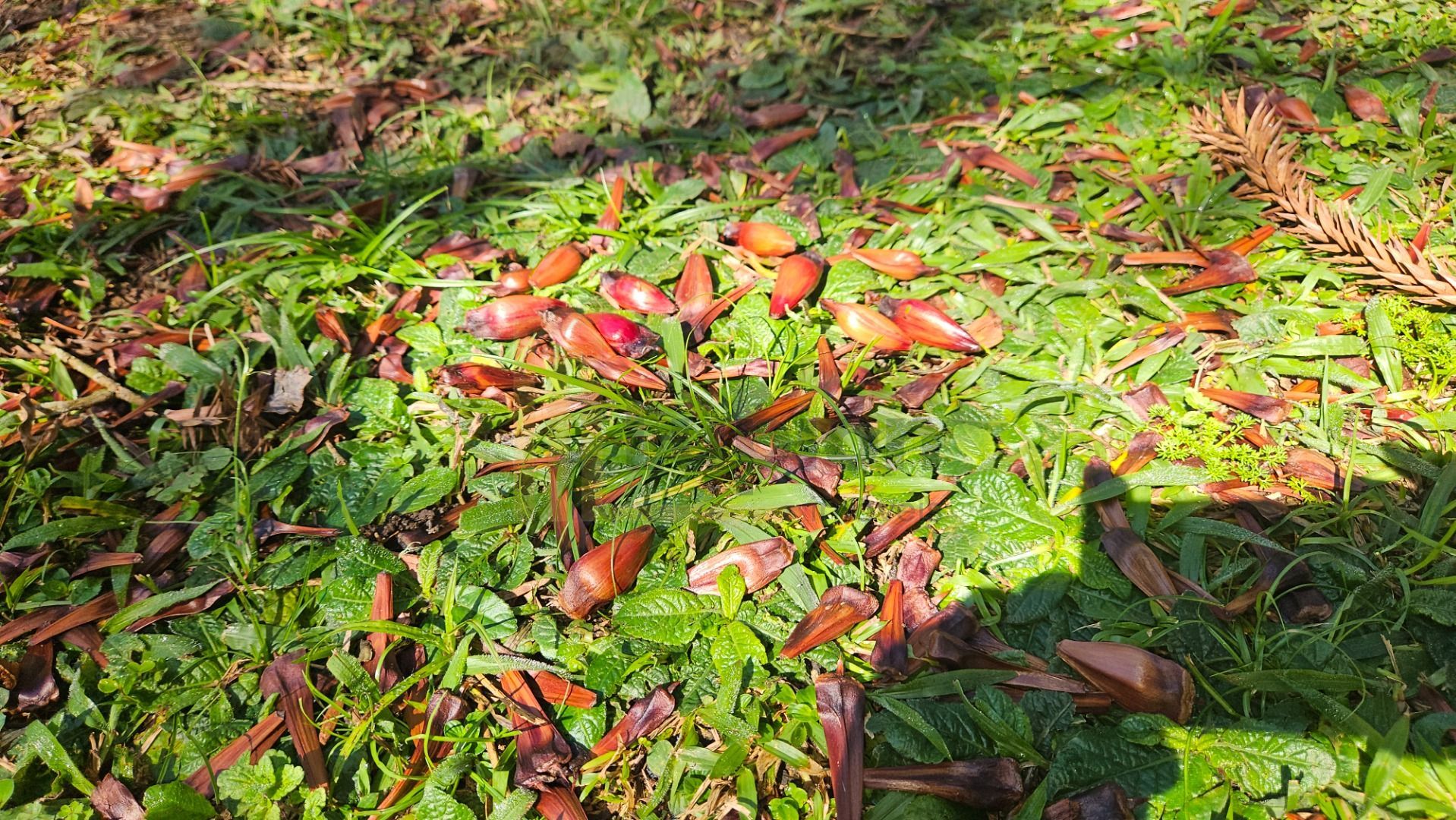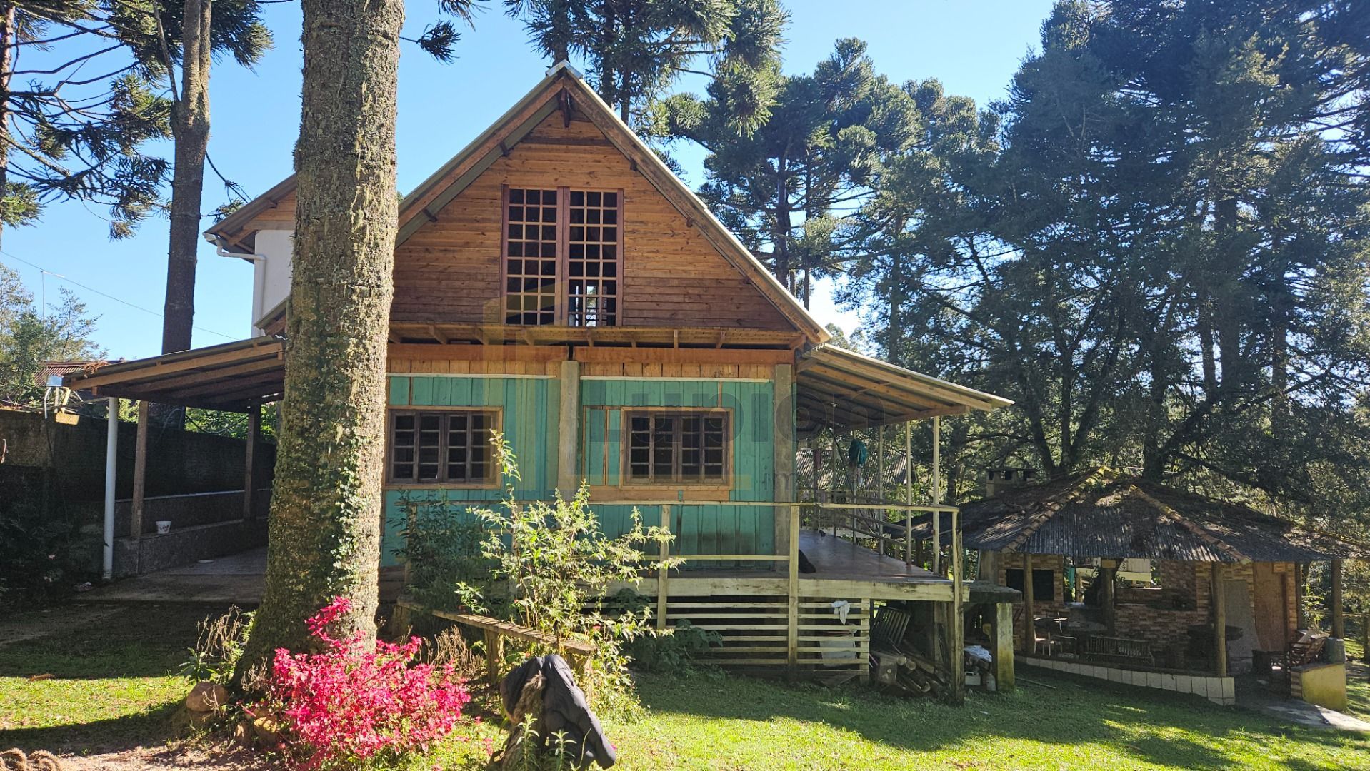 Natureza abundante: várias araucárias em plena produção e árvores frutíferas, como mexerica, limão e pitanga