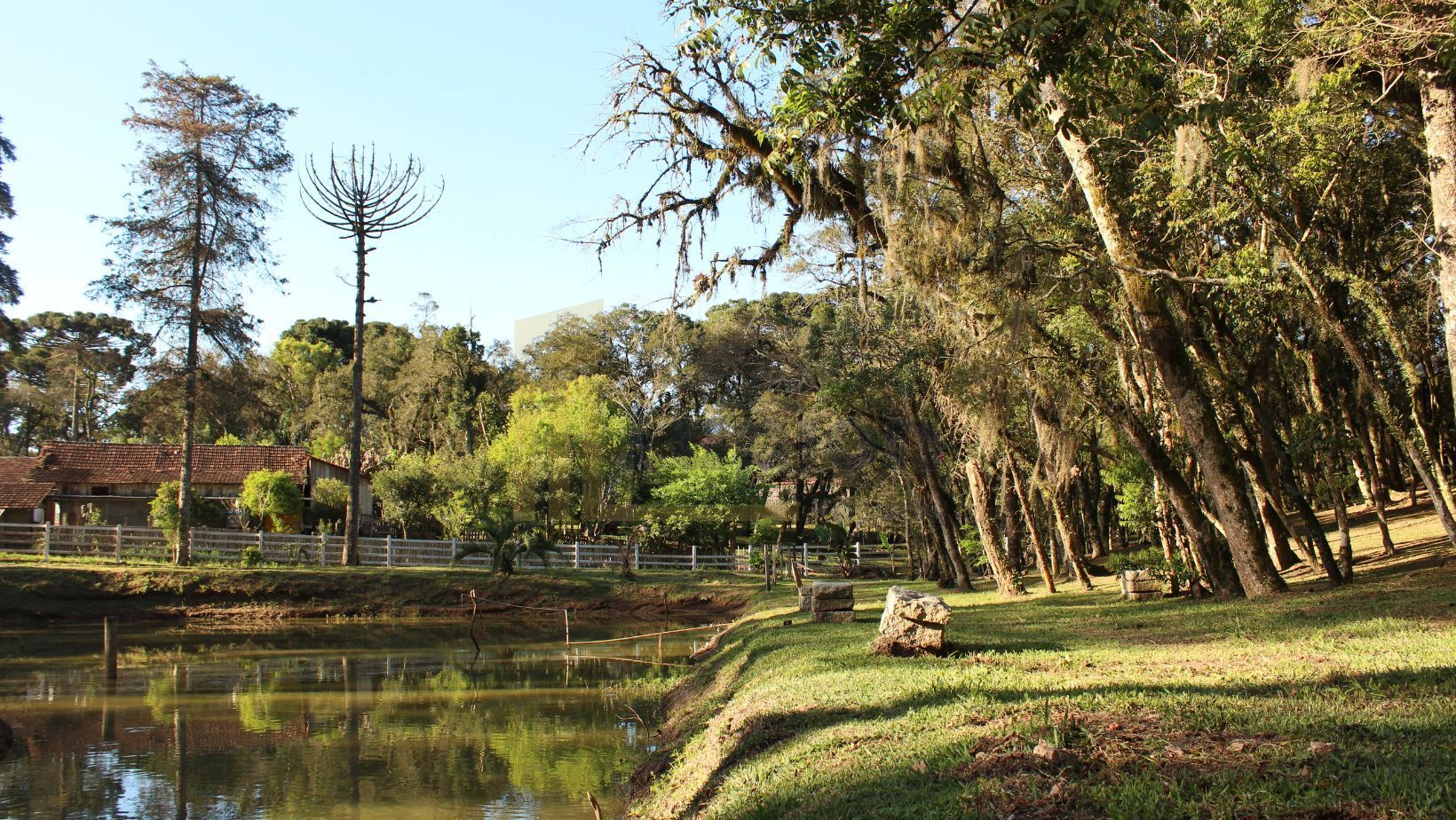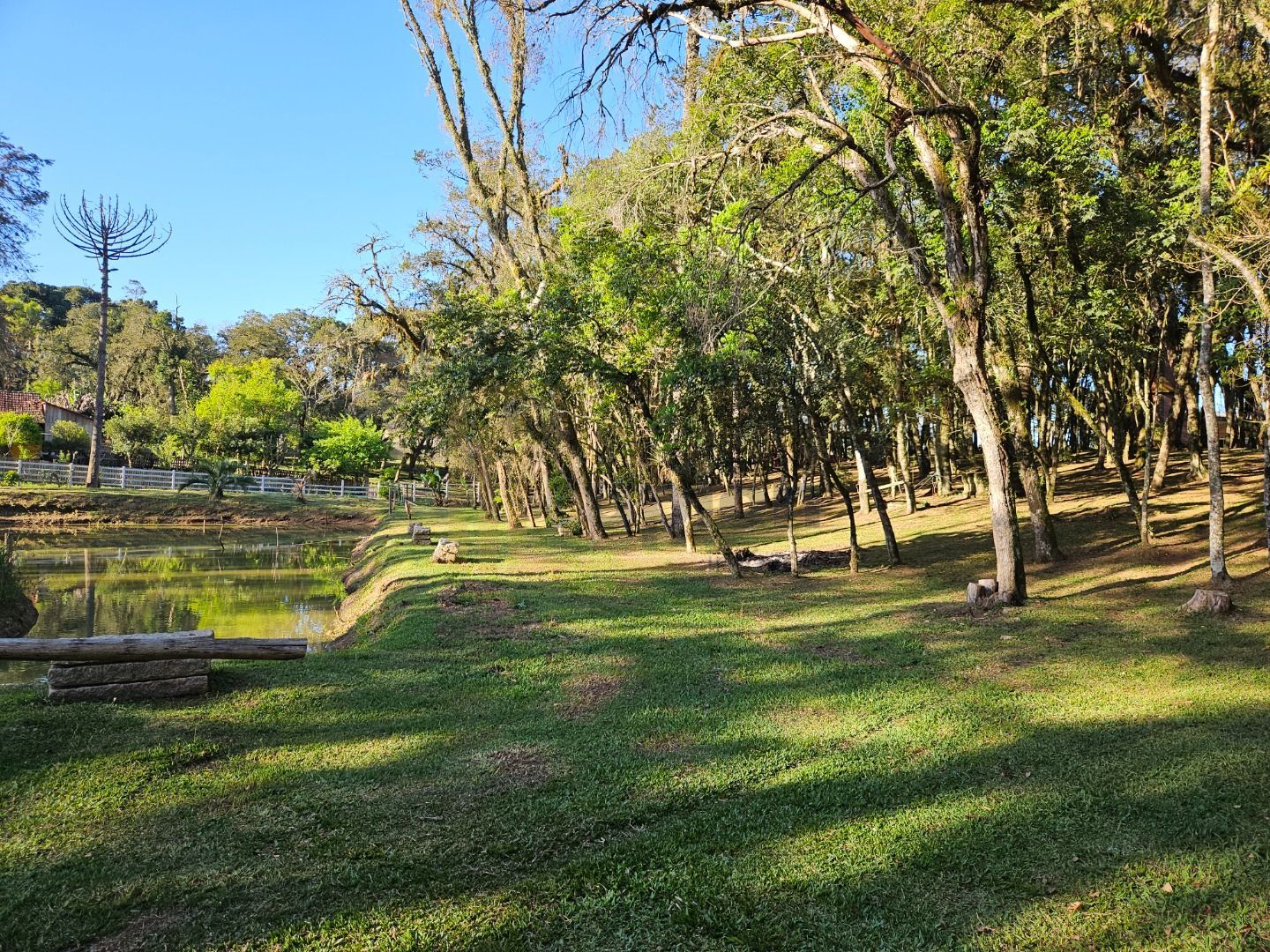 Com 7.755 m², a chácara possui um lindo bosque de árvores frondosas, perfeito para caminhadas, redes de descanso e momentos tranquilos ao som dos pássaros. Um belíssimo lago com ilha central acrescenta ainda mais charme e serenidade ao local.