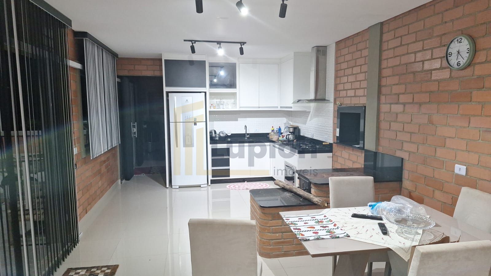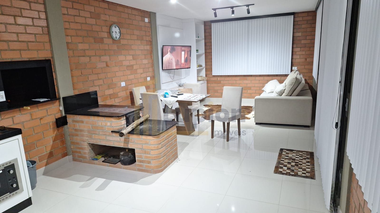 A área construída é de aproximadamente 600 m², ideal para moradia, com sala e cozinha integradas em conceito aberto, cozinha planejada com fogão a lenha e banheiro social no piso térreo. No piso superior, acessível por uma escada em mármore, encontram-se 03 quartos espaçosos, sendo 01 suíte.