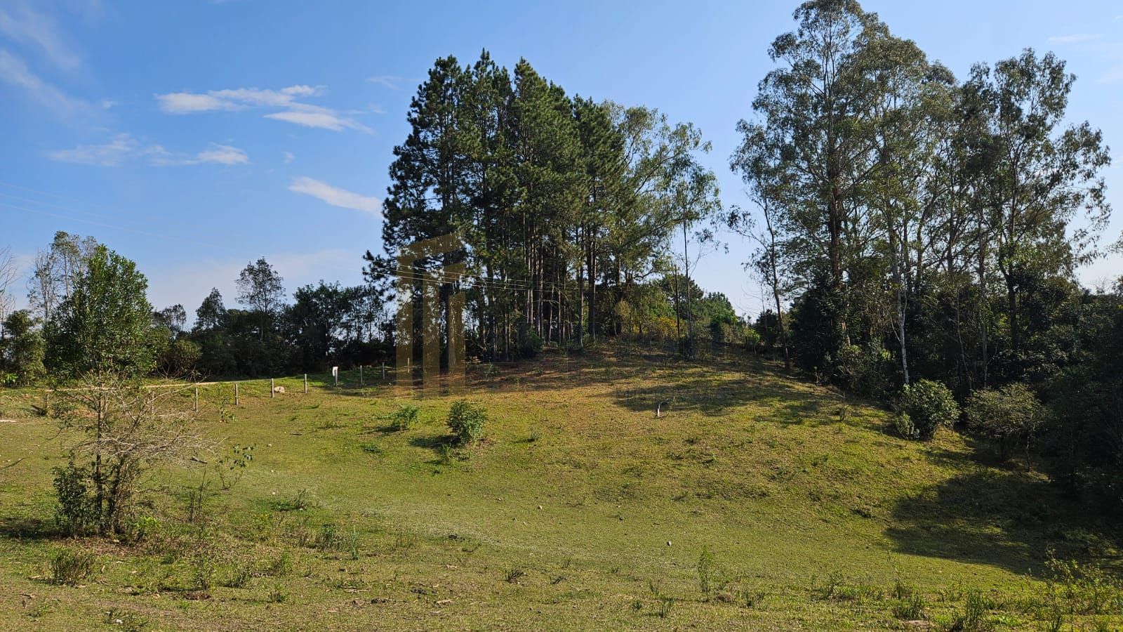 Plantação de pinus e eucalipto com aproximadamente 10 anos, oferecendo beleza natural e potencial econômico.