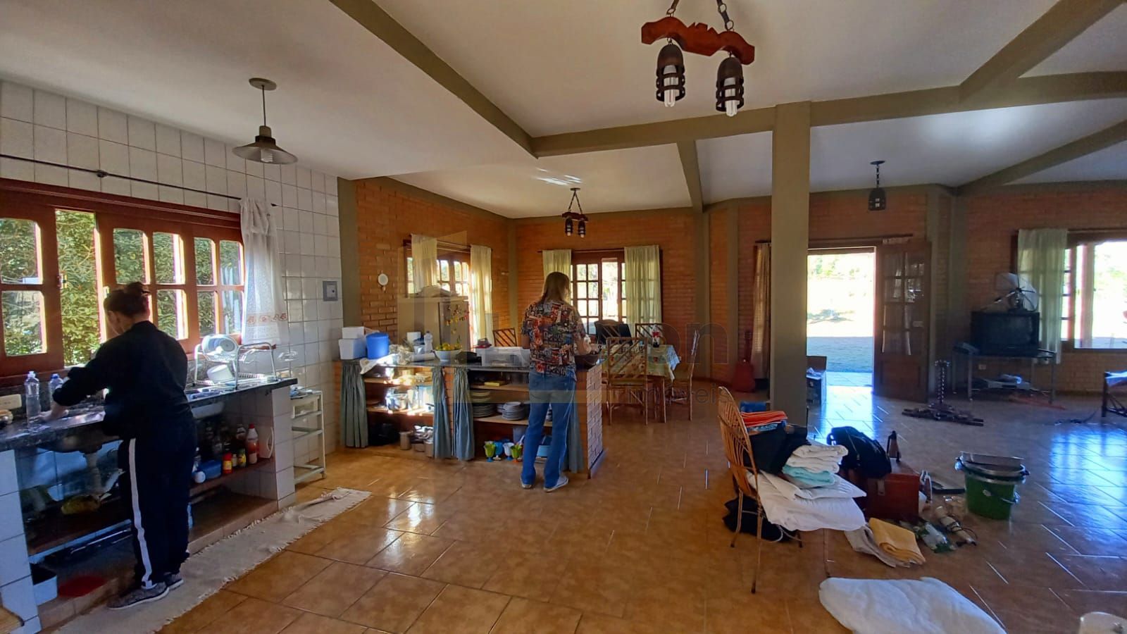 Sala de estar e jantar integradas à cozinha e lavanderia, criando um espaço aconchegante e funcional.