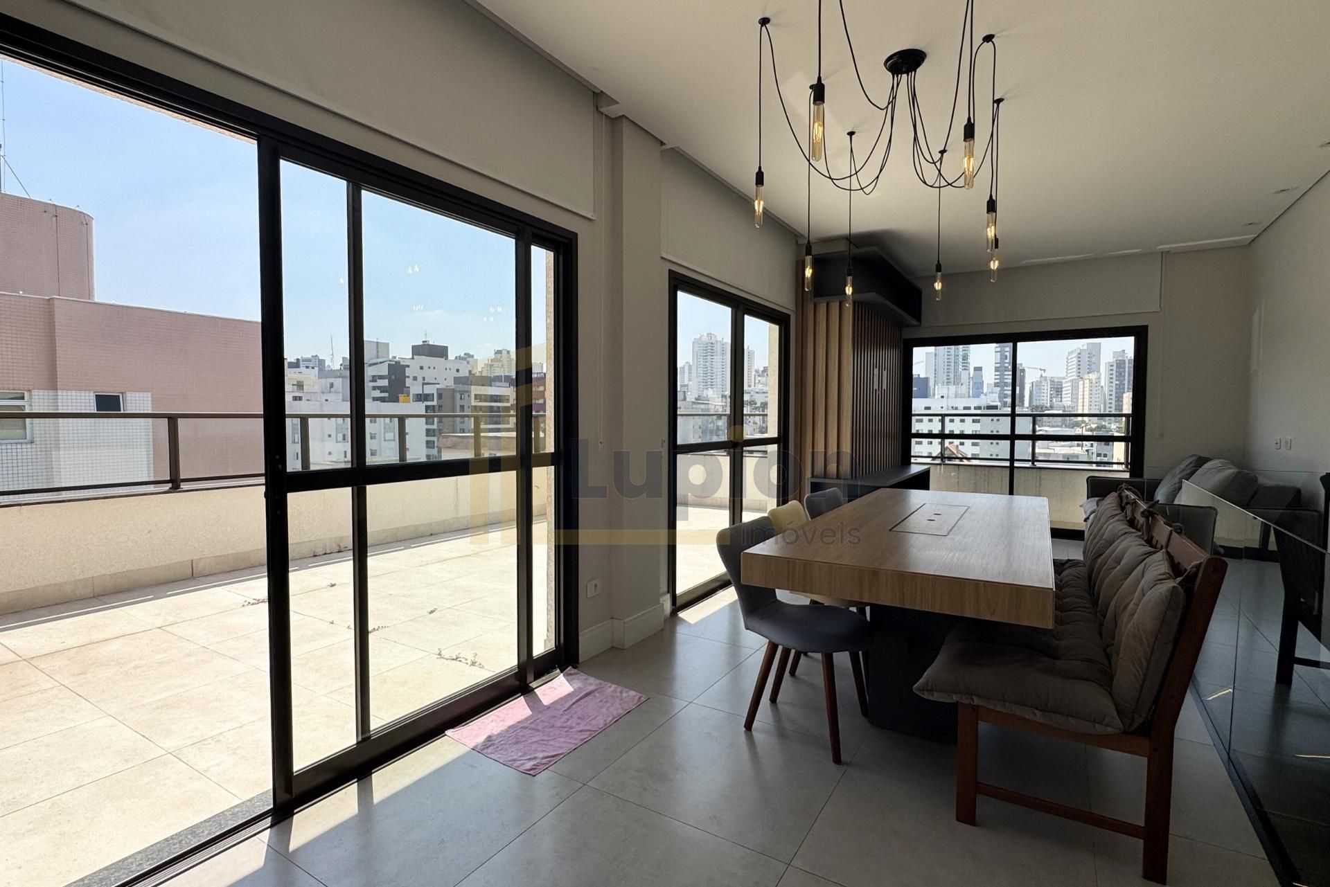 A cobertura é semimobiliada, com armários planejados em diversos ambientes, o que agrega praticidade e otimiza os espaços. O imóvel também conta com vagas de garagem e está localizado em região com fácil acesso a serviços, comércios e vias importantes da cidade.