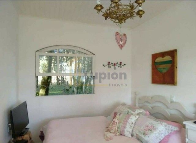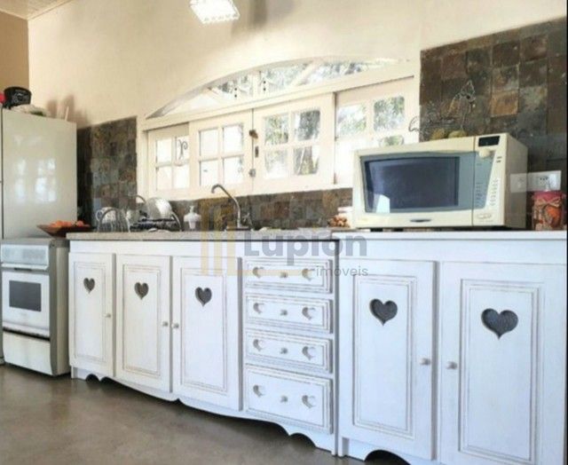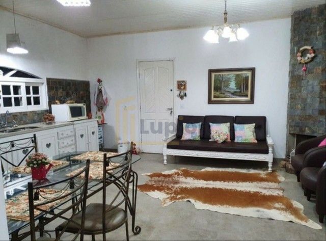 A casa principal, com 100 m², oferece conforto e aconchego: dois quartos espaçosos, sala ampla, cozinha integrada, lareira acolhedora e banheiro com jardim de inverno, proporcionando uma conexão única com a natureza.