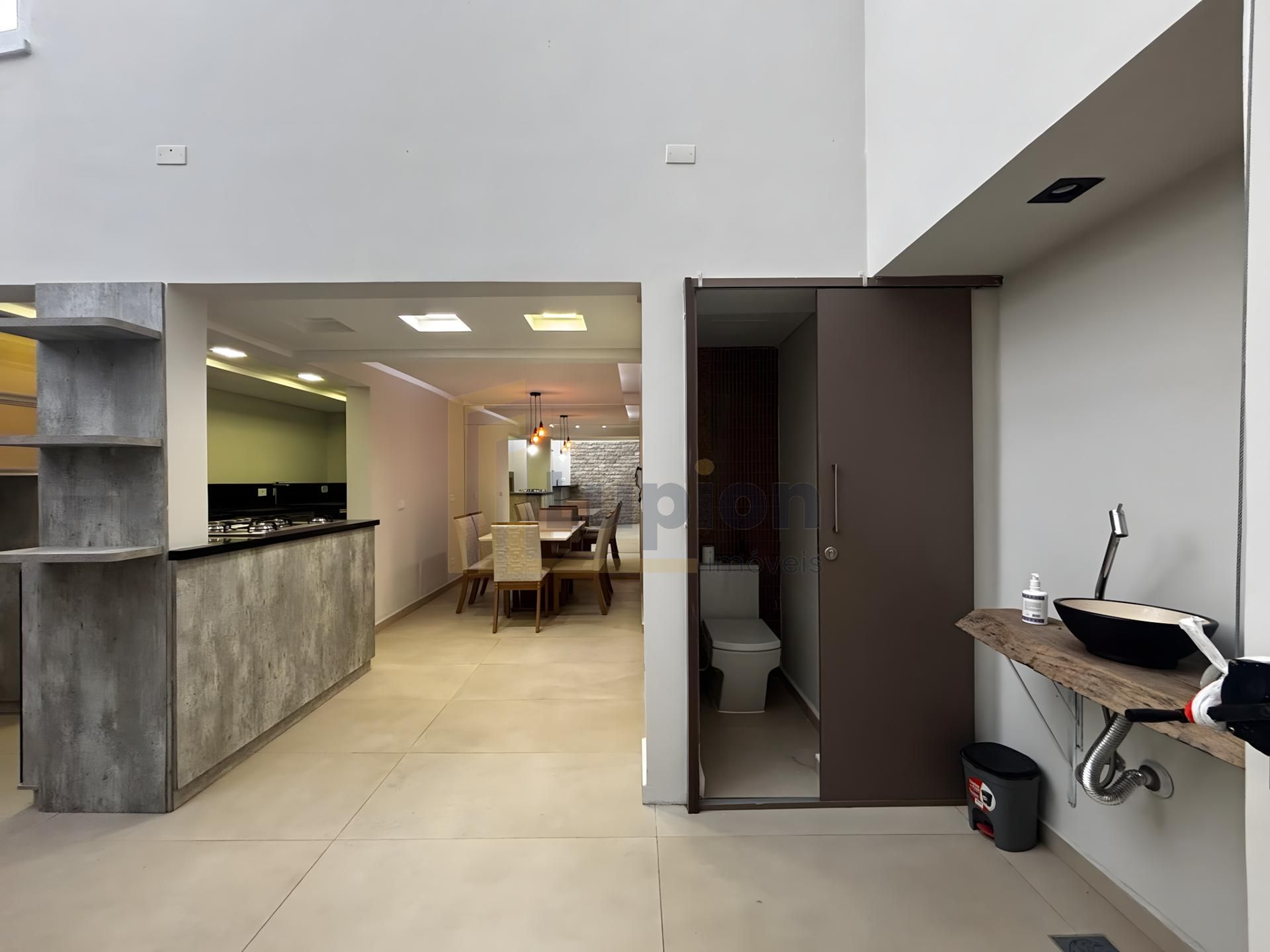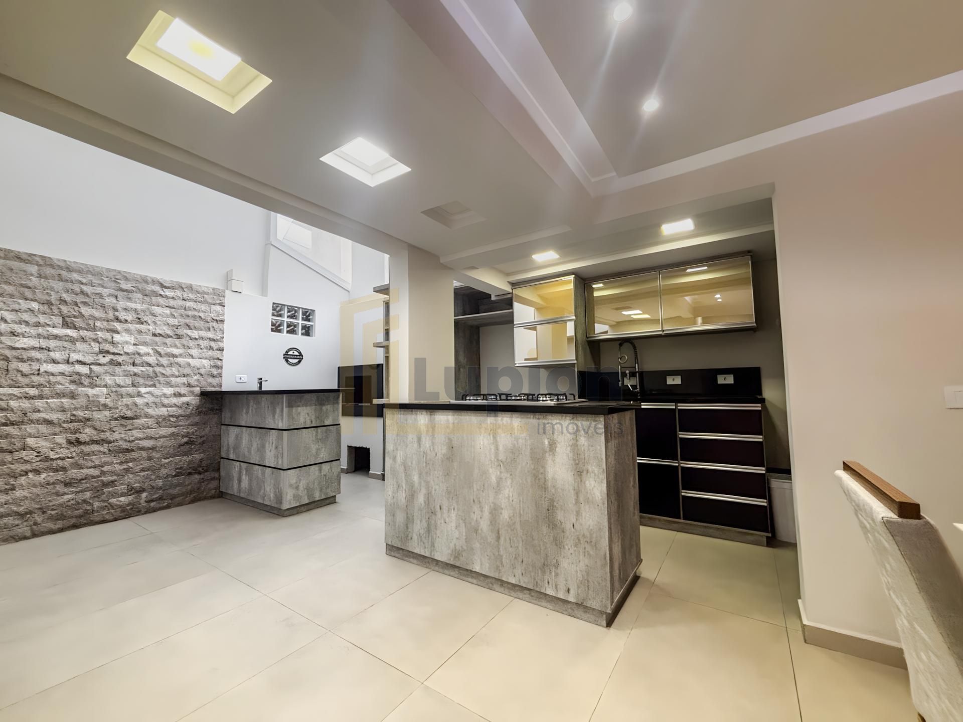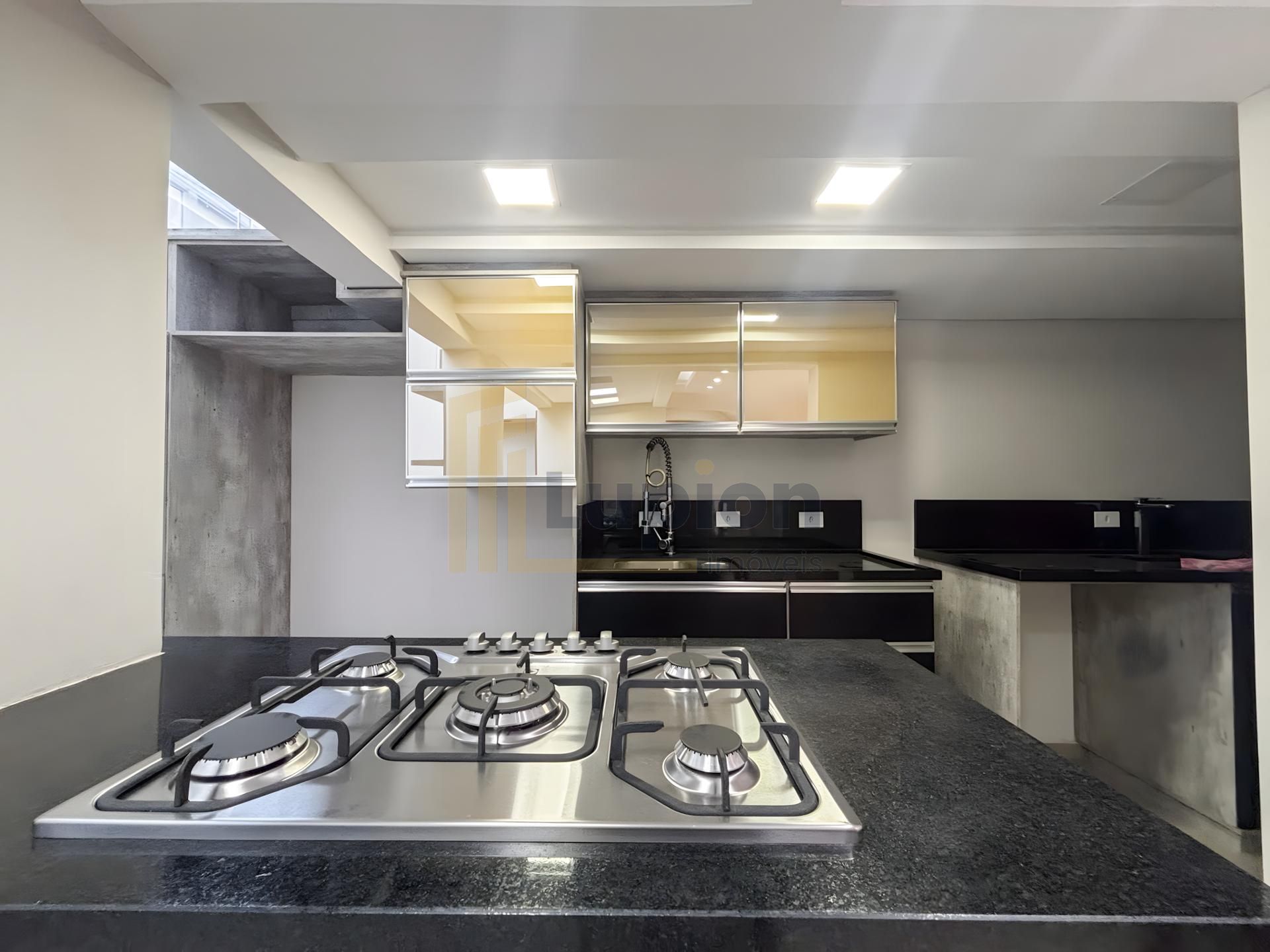 A cozinha planejada com acabamento moderno vem completa com armários embutidos, cooktop e mesa para 6 pessoas - perfeita para reunir a família. A sala de TV com lareira cria o ambiente ideal para momentos de convivência, já mobiliada com sofá de 4 lugares.