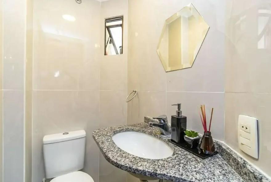 O imóvel conta com 3 quartos espaçosos, sendo 1 suíte master com hidro e sacada privativa, perfeita para momentos de relaxamento. O banheiro social é completo, com chuveiro moderno, e o lavabo recentemente reformado garante praticidade e sofisticação para receber visitas.