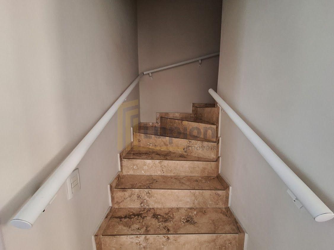 O pavimento superior conta com 3 quartos, sendo 1 suíte master, sala de estar e banheiro social.