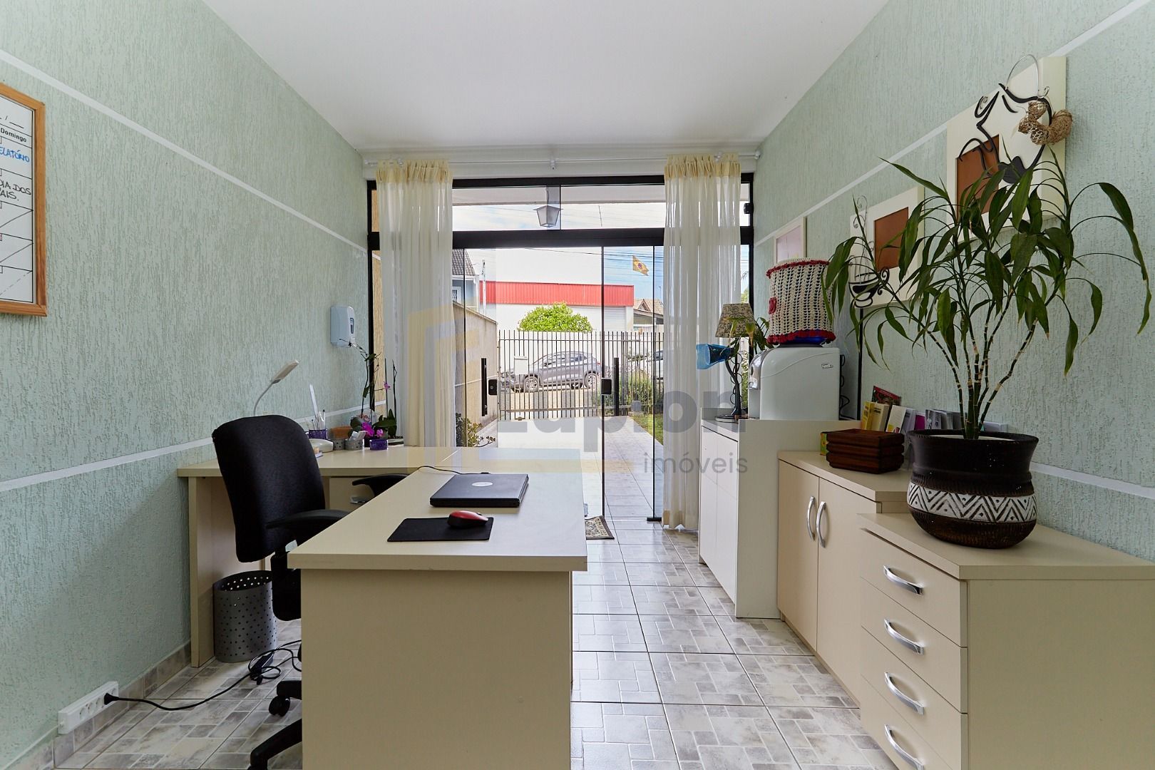 Sala ampla para 2 ambientes. Parte da garagem foi revertida em escritório, mas pode ser revertida novamente para vaga coberta.