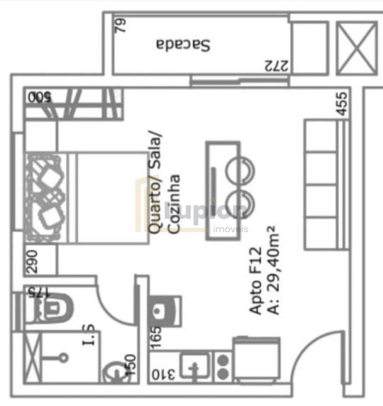 Stúdio 29,38 m com sacada, churrasqueira e vista panorâmica no Água Verde