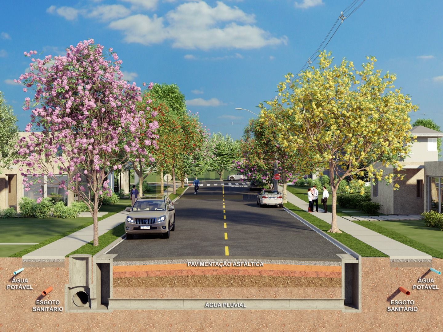 Infraestrutura total: água, luz, esgoto e asfalto;